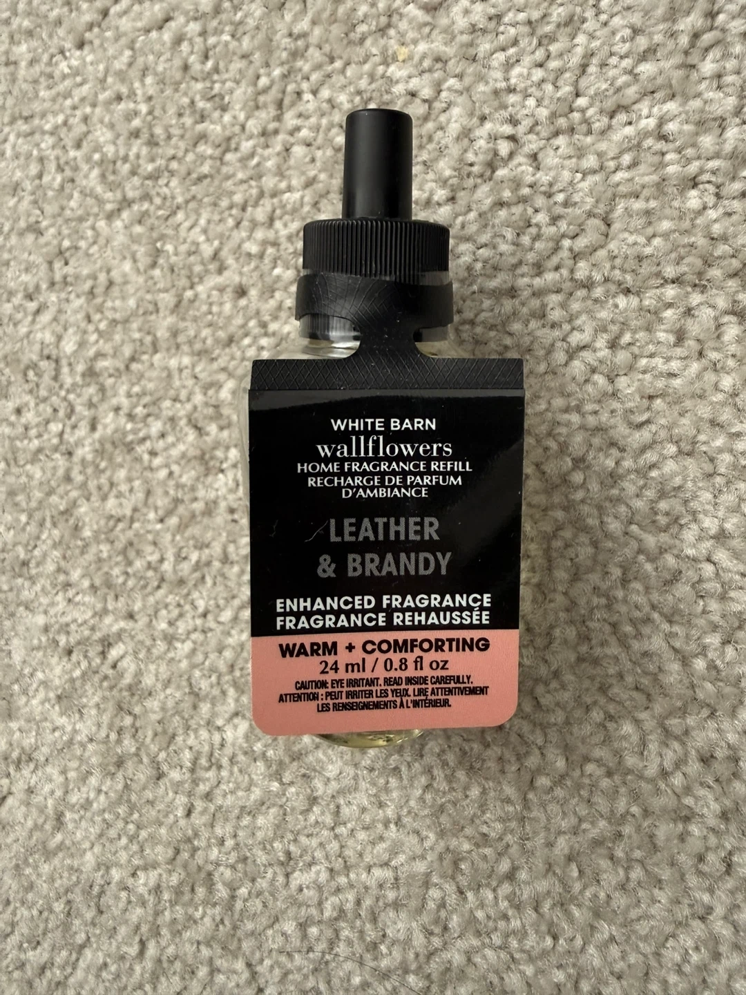 Selling a Bath and Body Works/White Barn Wallflower home fragrance refill in the Leather & Brandy scent! It's an enhanced fragrance that's warm and comforting. The refill contains 24 ml / 0.8 fl oz New Pick up only Cash only