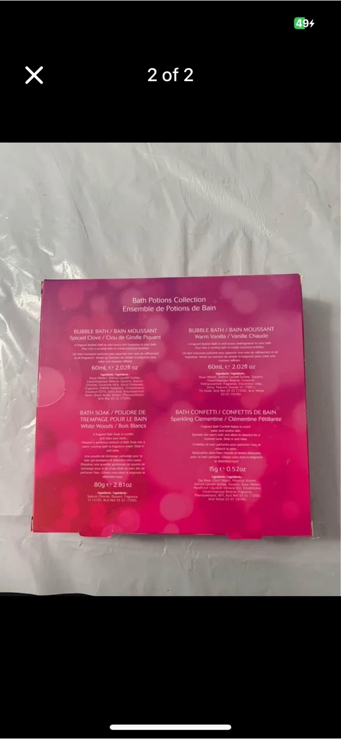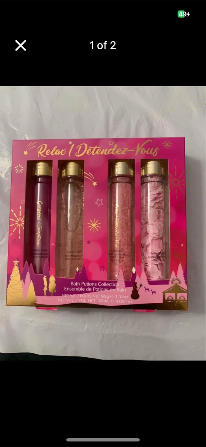 Selling a Bath Potions Collection set to help you relax! This set includes: - Bubble Bath - Bath Soak - Bath Confetti Perfect for a relaxing bath after a long day