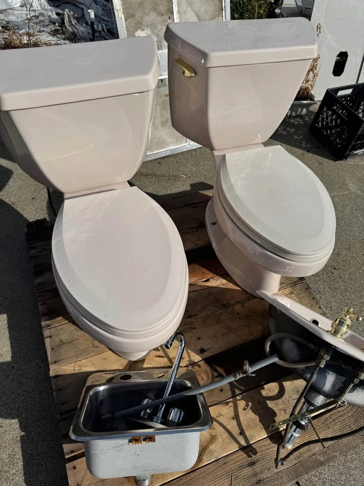 2 Bathtubs available - good condition, ends chipped ends $125 each 1 Jacuzzi - $250 5 toilets - $100 4 sinks, 2 oval, 2 octagon shape Colour: taupe Brand: Kohler toilets & sinks Installed likely in 2003/2004. Some have gold hardware, some have chrome. Doing house renovations.