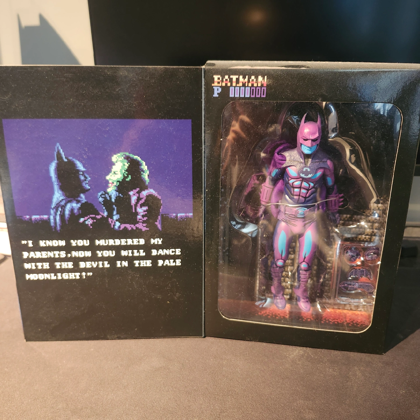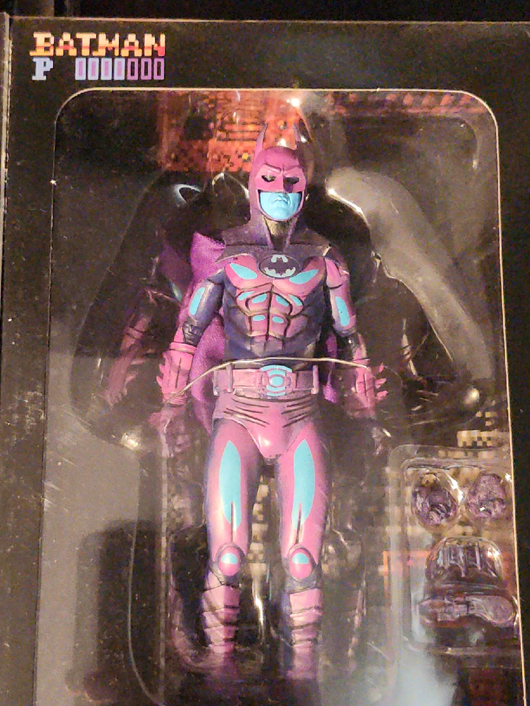 Selling a Batman action figure, specifically the Pink Galador version! It's still in its original packaging and looks to be in great condition. A unique addition for any Batman collector