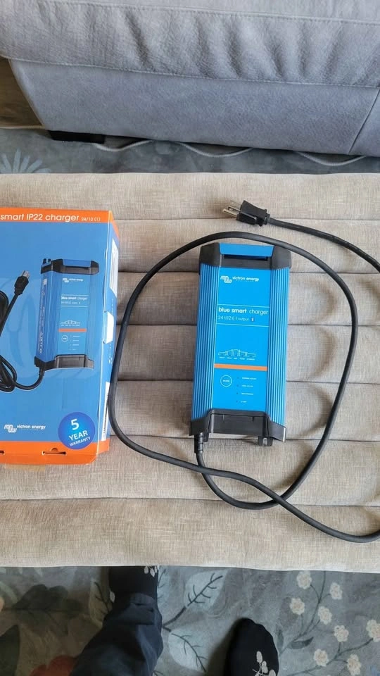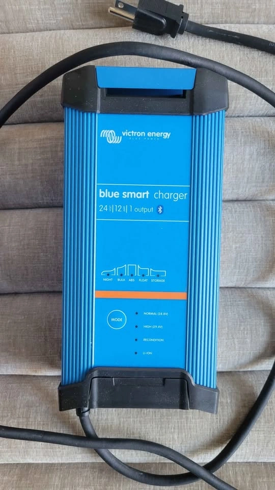 Practically brand new car battery charger 24 v 12 Amp 1 output. Used twice and it works great and very fast. Comes in the box with all parts and booklet. Reason for selling I upgraded the batteries for my system and it doesn't fit them.