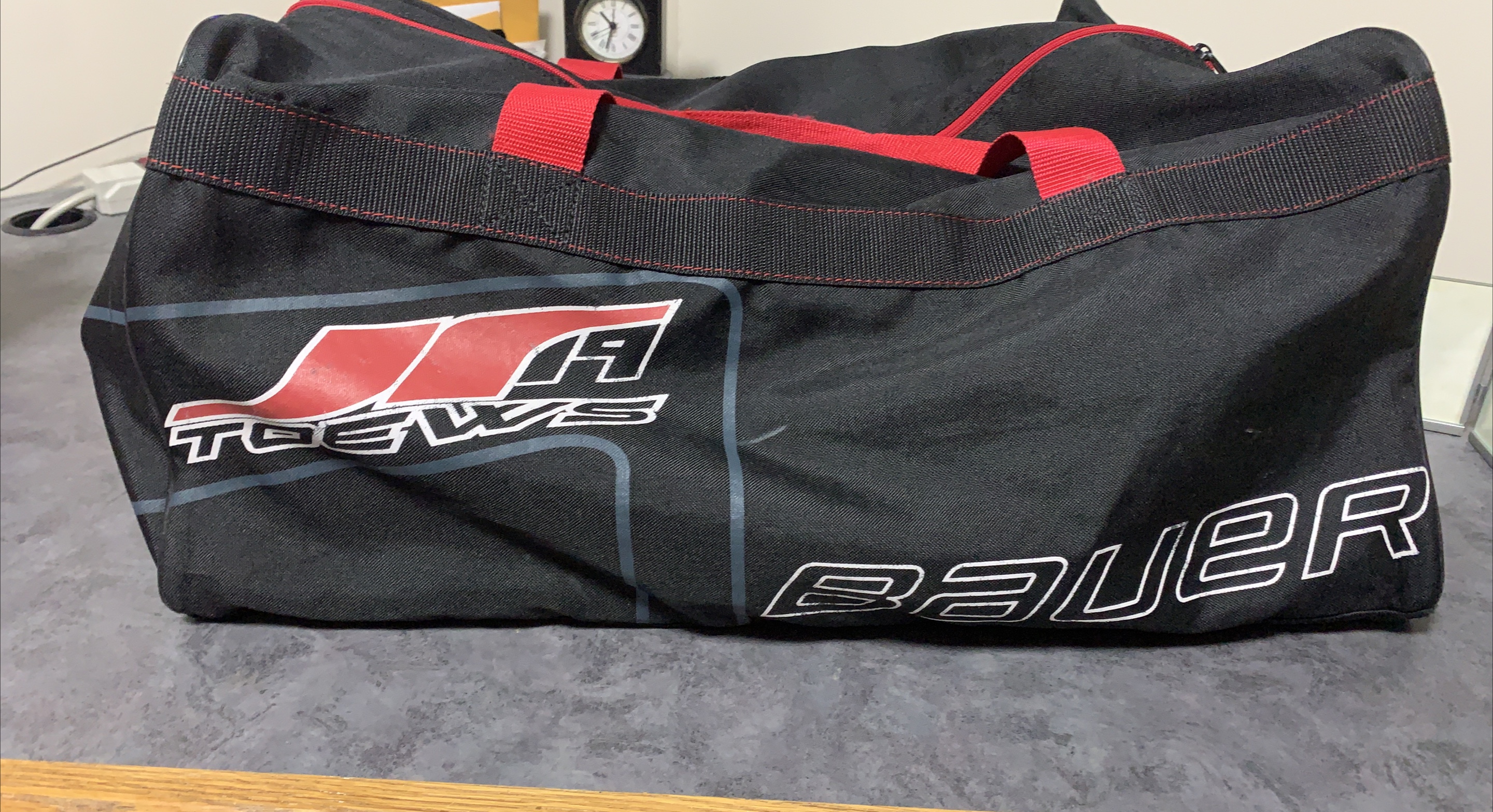 Selling a Bauer hockey bag in black with red straps. It's in good condition and ready for your gear!