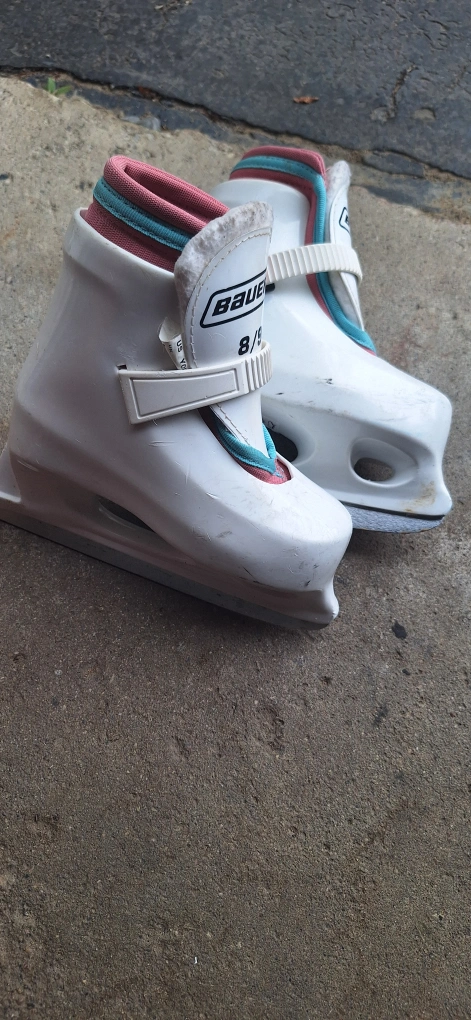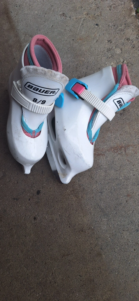 Selling a pair of Bauer ice skates, size 8/9. They're white with some wear and tear, but still lots of life left in them! Perfect for recreational skating or just having fun at the rink.
