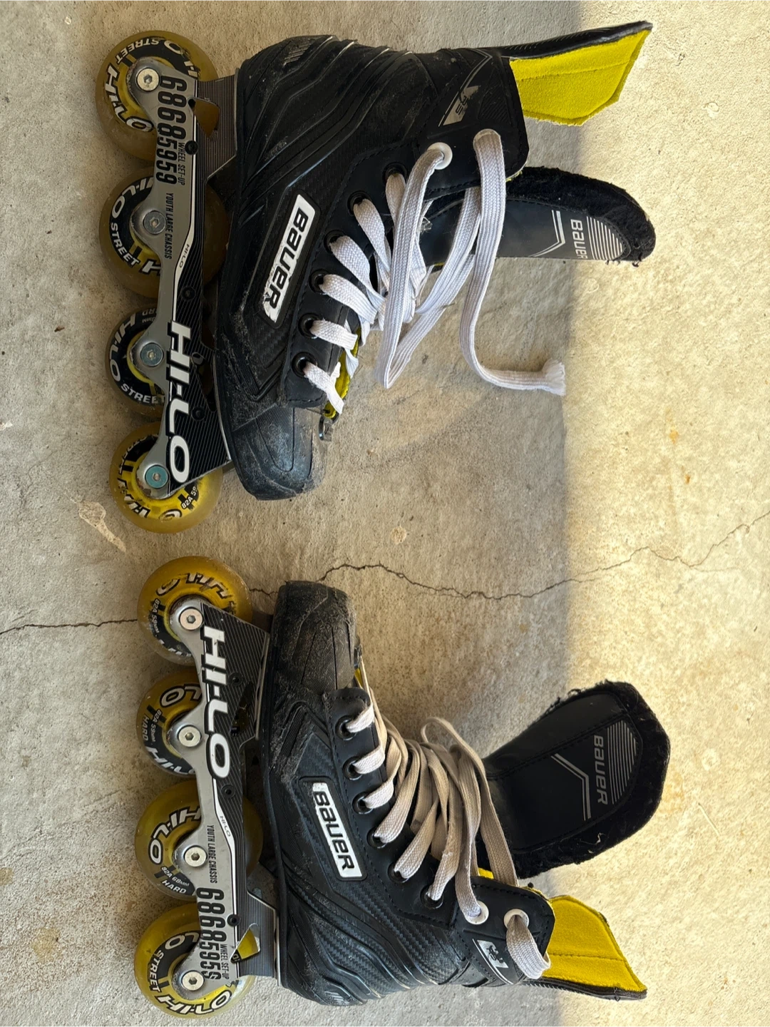Selling a pair of Bauer inline roller skates. They show some signs of use, but are still ready to roll! The wheels are Hi-Lo Street. Size 12.5 and the retailed for $199.