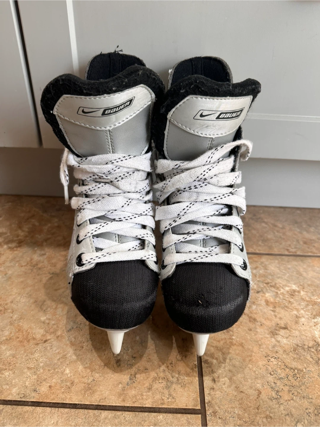Selling a pair of Bauer Lightspeed Pro youth ice skates in size Y13. These skates are perfect for young skaters looking to improve their skills on the ice. They show some signs of use but are still in good condition for lots of skating fun!