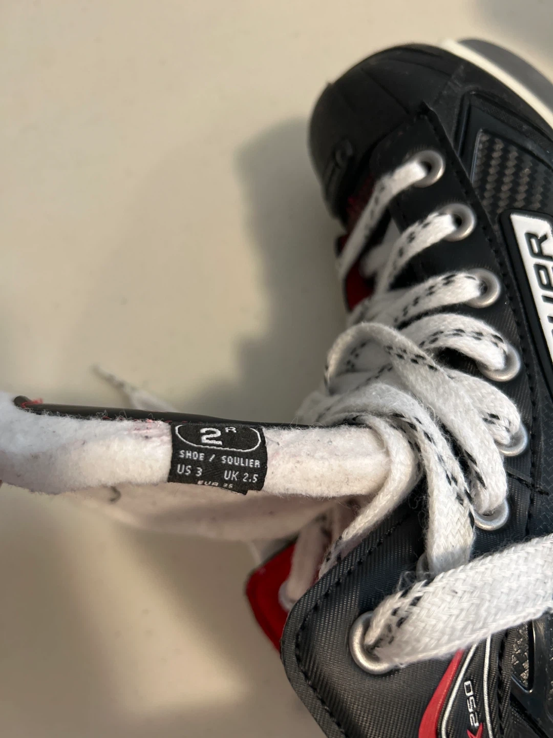 Selling a pair of Bauer Vapor X250 youth ice skates. They are size 2 1/2 US. Great for getting your little one out on the ice. Size 3
