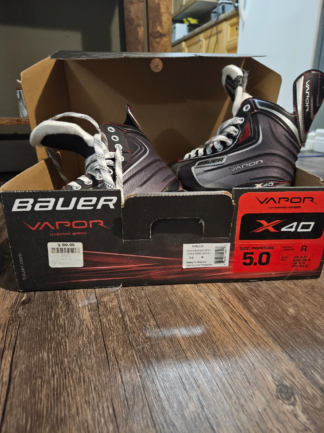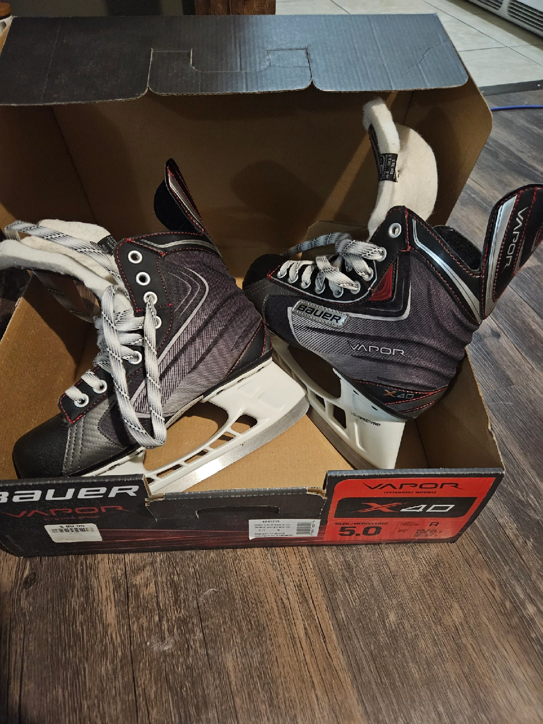 Selling a pair of Bauer Vapor X40 ice hockey skates. They come in the original box. The size is US 6. These were only worn twice.