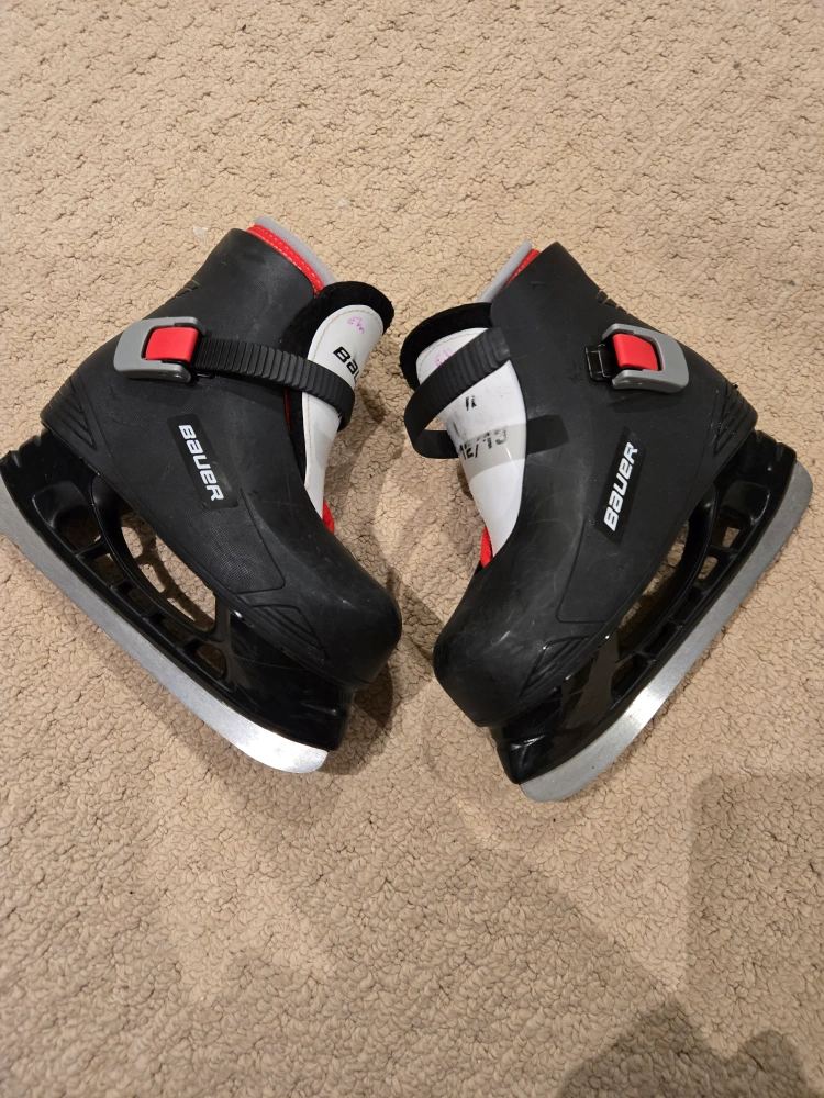 Show allSelling a pair of Bauer youth ice skates, size Y12/13. They are in great shape and ready for the rink! Also included is a Bauer hockey helmet.