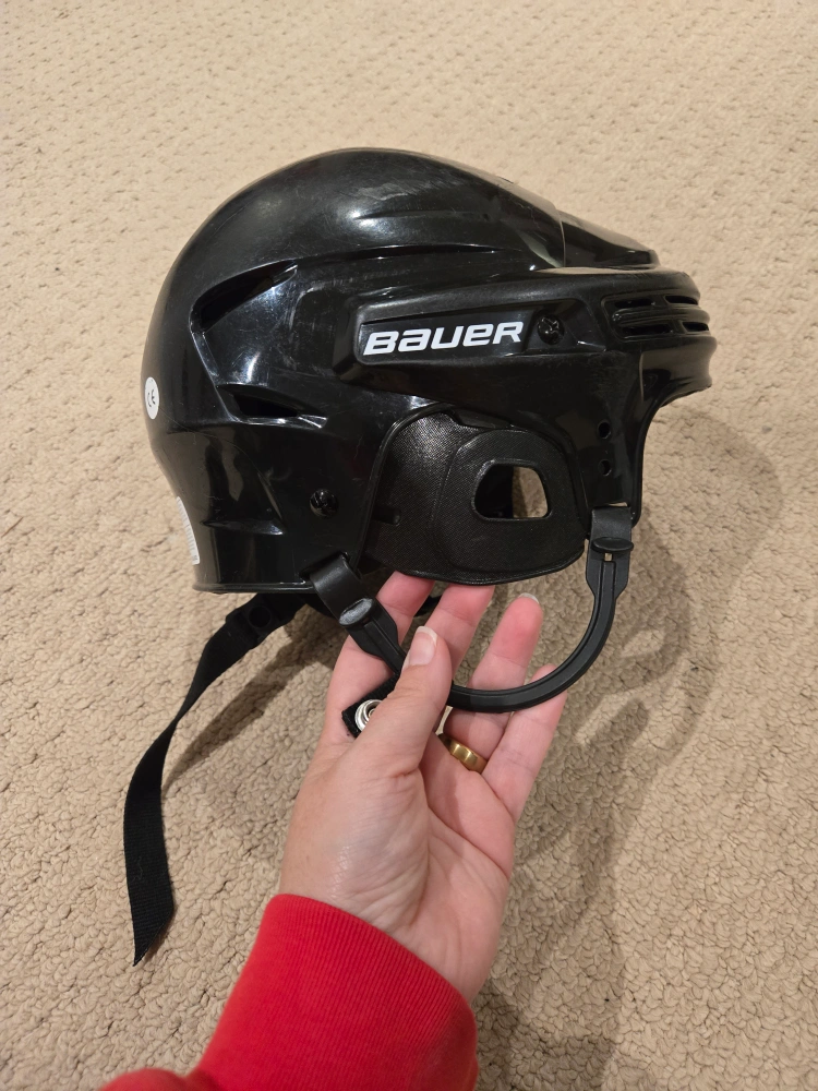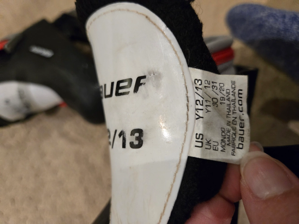 Selling a pair of Bauer youth ice skates, size Y12/13. They are in great shape and ready for the rink! Also included is a Bauer hockey helmet.