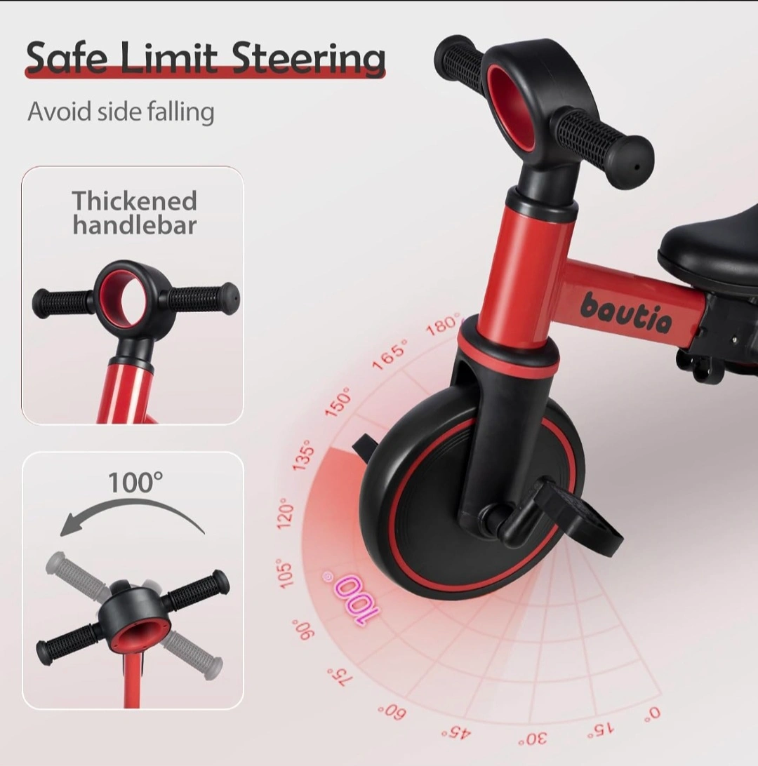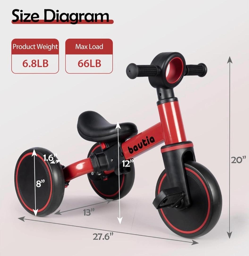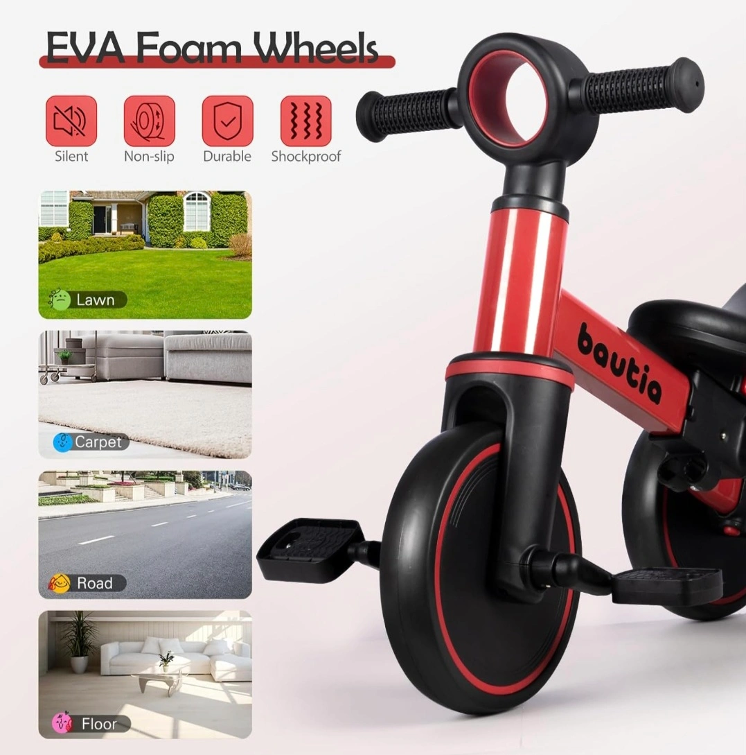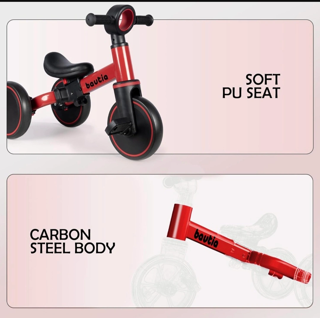 Check out this Bautia 4-in-1 tricycle/bicycle for kids! Brand New and ready for a new rider. This versatile tricycle easily converts to suit different stages of your child's development. The colour is red and black, perfect for any kiddo who loves to explore!
