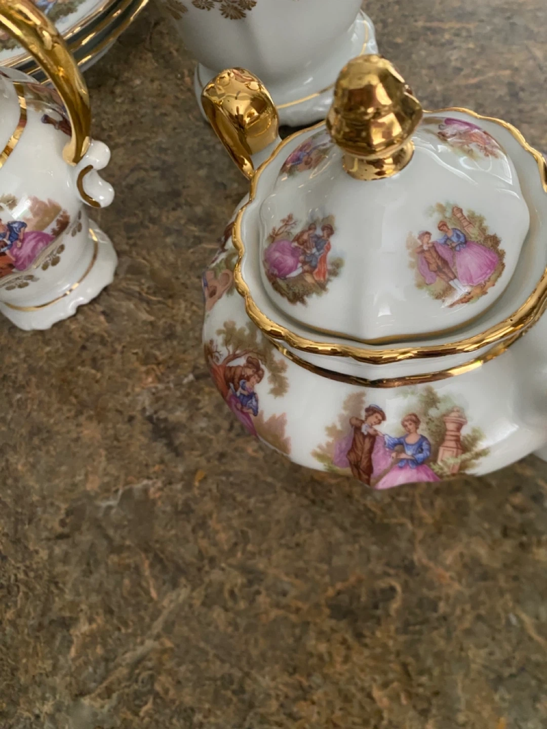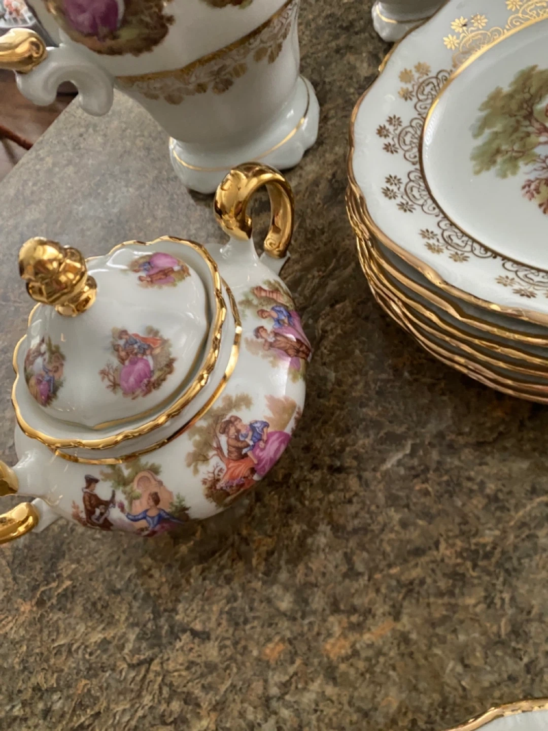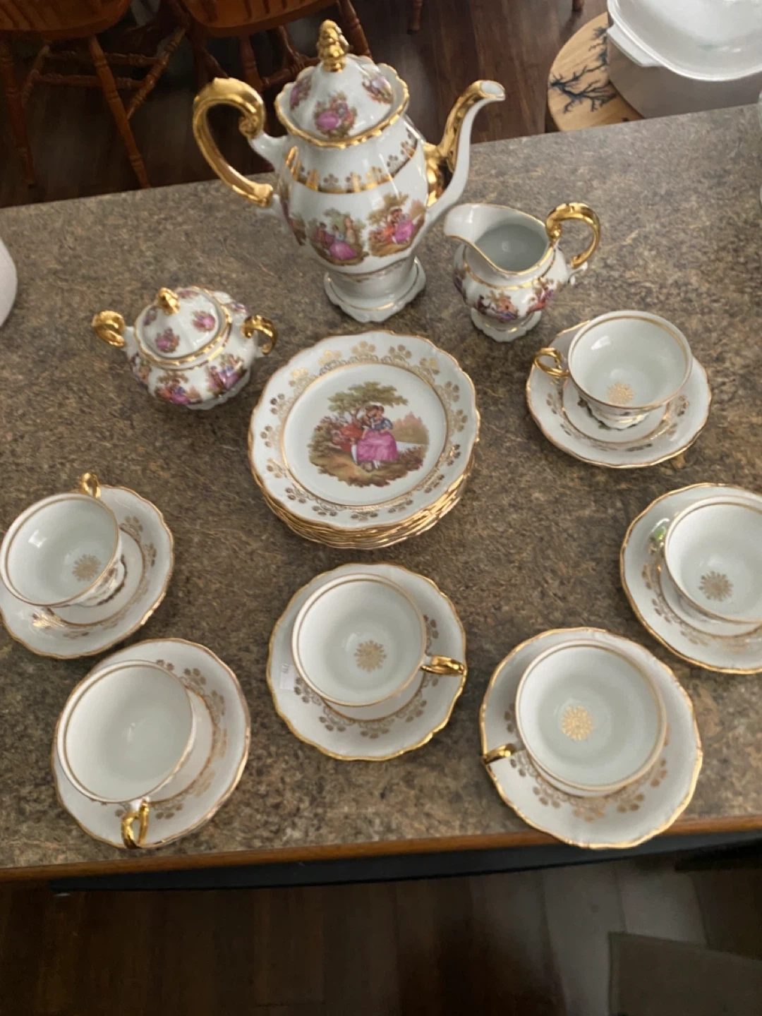 Includes teapot, creamer, sugar bowl, cups,saucers and plates. Perfect for a special occasion or to add a touch of elegance to your home ! This vintage tea set is the finest one I have ever seen and Bayreuth is highly sot after. Bavarian and in Mint condition.