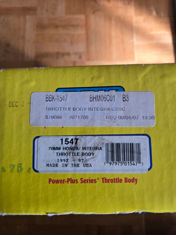 Selling a BBK Power-Plus Series Throttle Body. It's designed for Honda Integra/Civic models from 1992-97. The box indicates it's a 70mm throttle body. It's a direct bolt-on and fully computer machined from 356 aluminum for maximum longevity. Adds 8-12 horsepower to your car or truck!