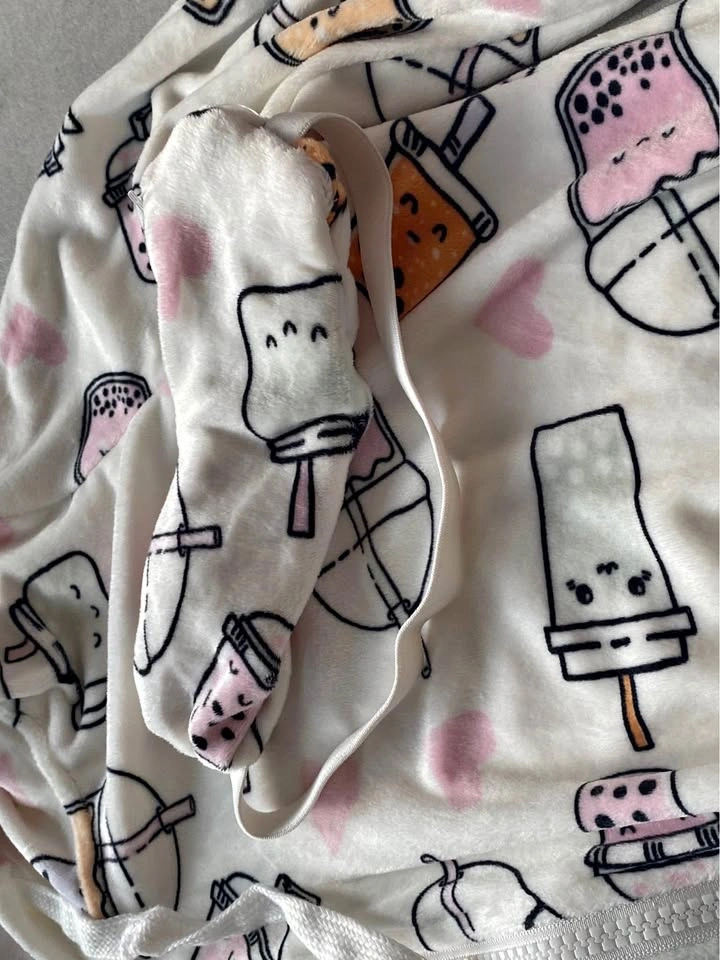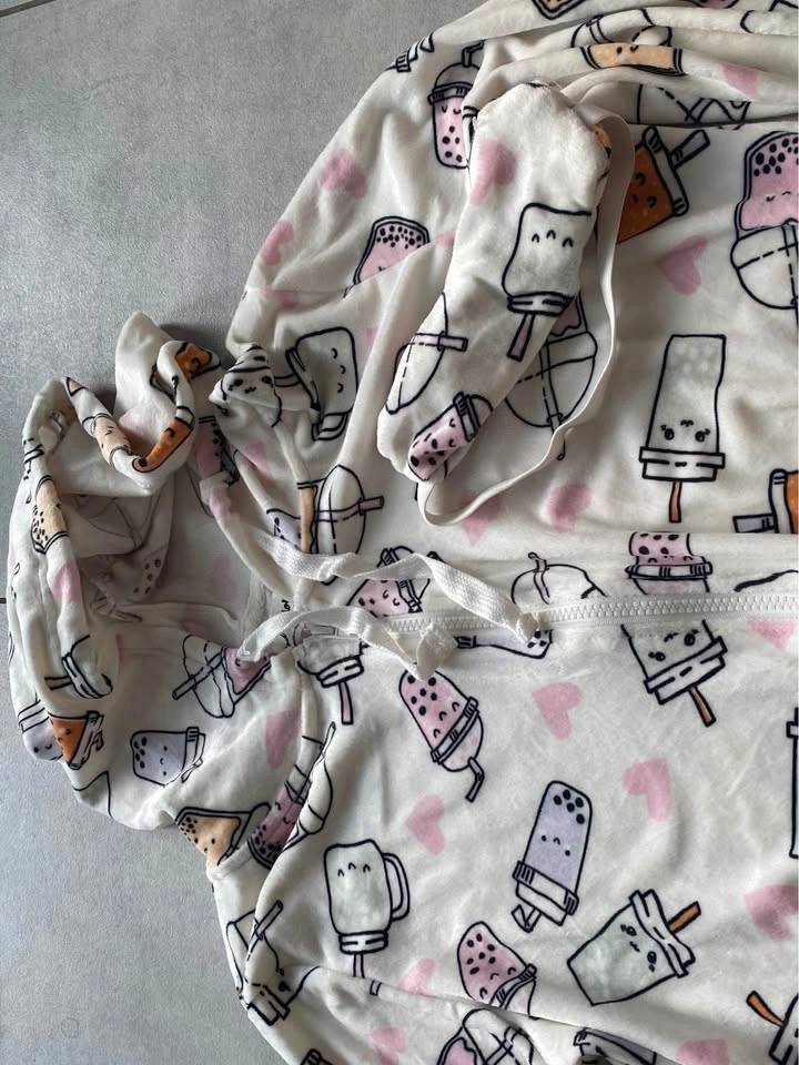 Only worn once for trying on, still have sleeping mask attached to it. Super light and soft, very comfortable to lounge in!