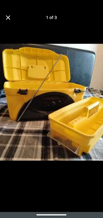 Ice Chest Cooler/toolbox AM/FM Radio The battery compartment comes with lid and DC adapter I've used it for a cooler and filled it with ice and also used it as a toolbox. Only used it as a cooler once, nice loud radio, great for the Beach ⛱️ 🎶