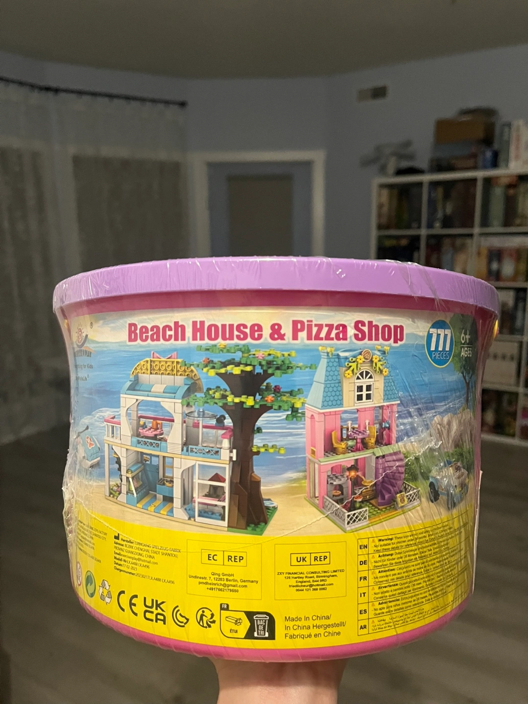 Building blocks set. 777 pieces. Includes a beach house and a pizza shop.