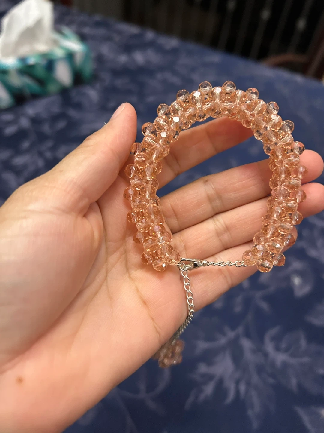 Selling a cute beaded bracelet! It's a beautiful peach colour and would be a great addition to any outfit. It's in great condition and ready for a new home size is small(2*2).