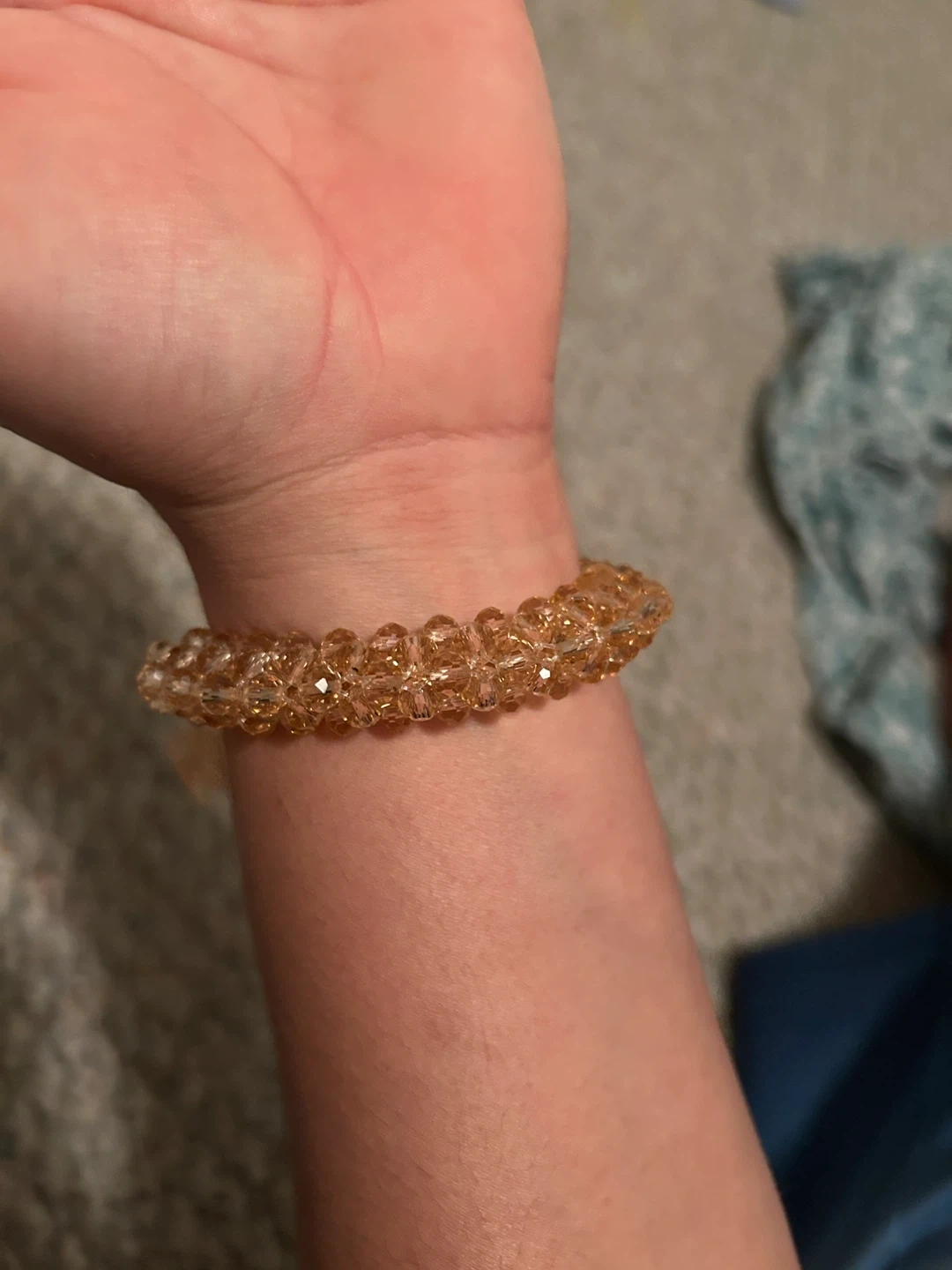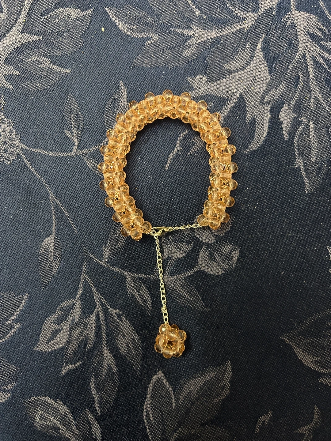 Selling a cute beaded bracelet! It's a beautiful peach colour and would be a great addition to any outfit. It's in great condition and ready for a new home size is small(2*2).