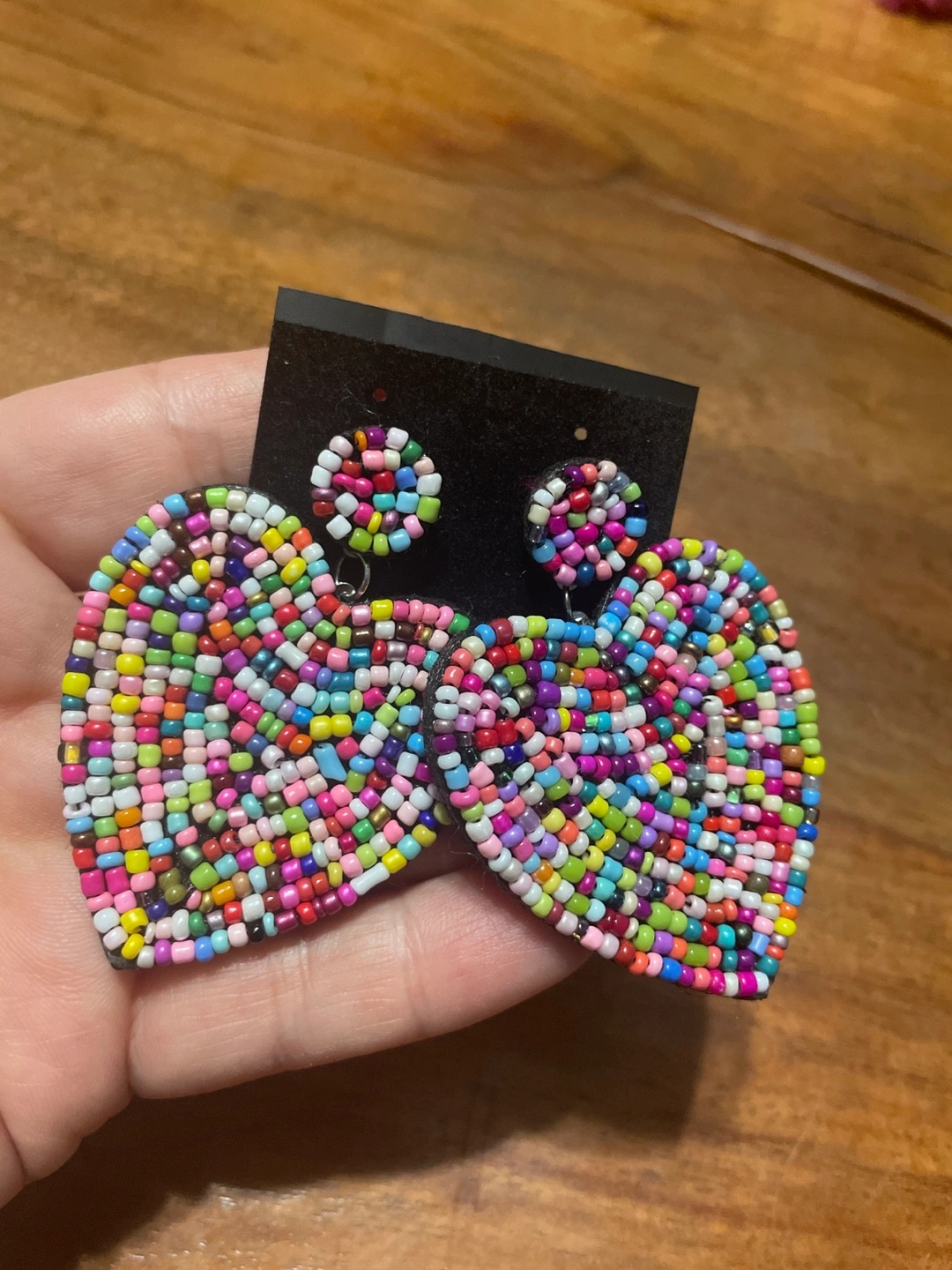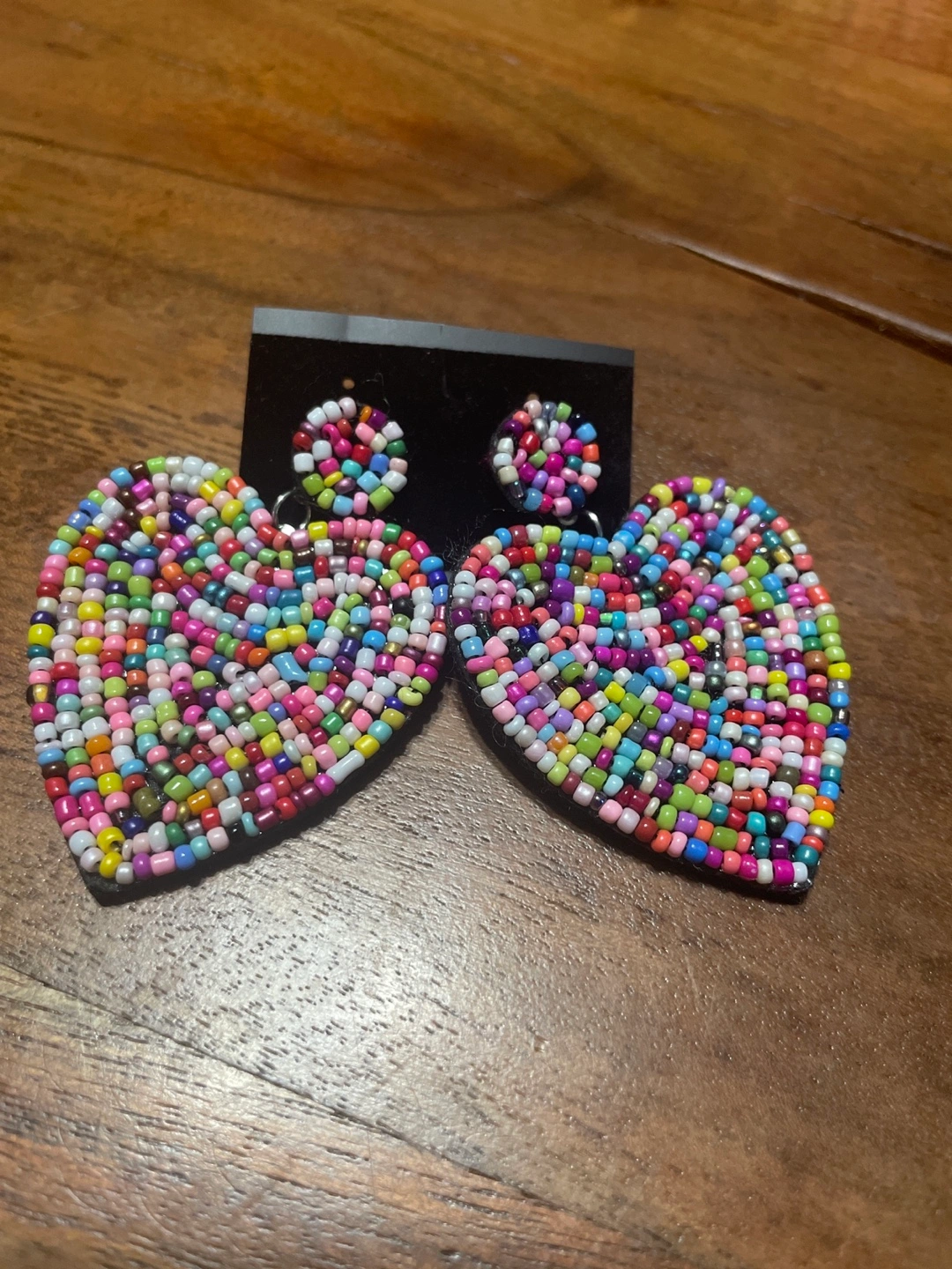 Colorful beaded heart-shaped earrings. Post backings. Lightweight and fun. ๐