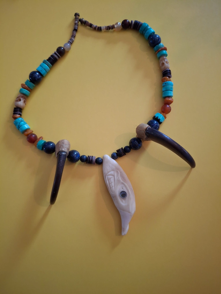 Handcrafted with actual bear claws and tooth., and various gen stones. 1995