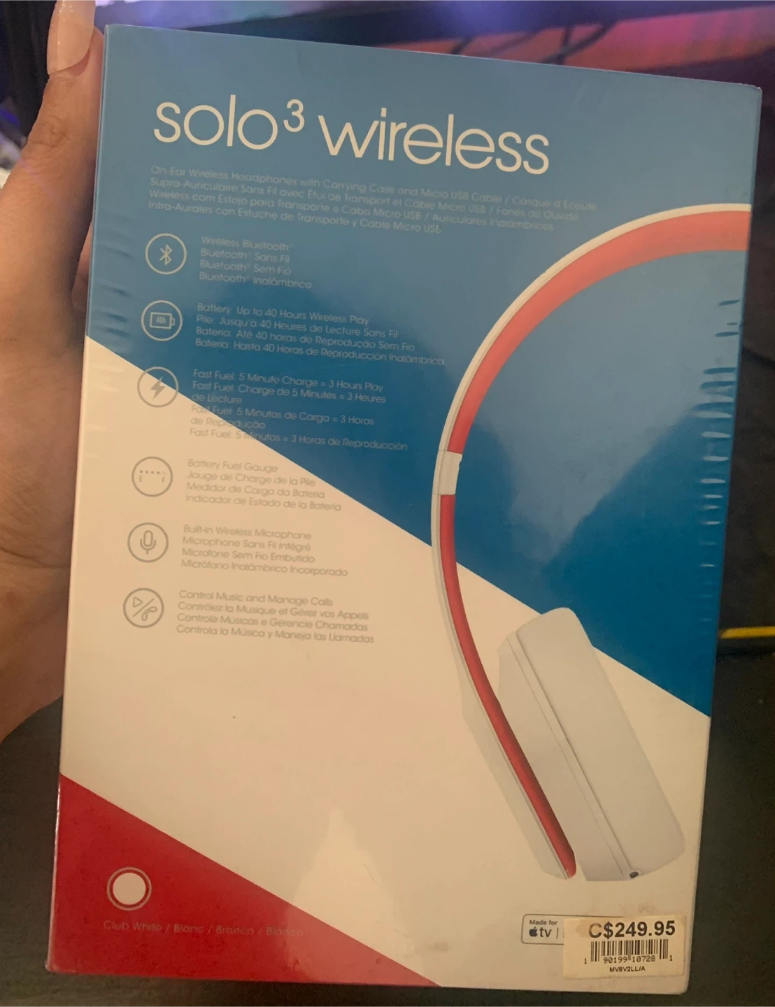 Selling a brand new, still sealed Beats Solo3 Wireless Club Collection headphones! These on-ear wireless headphones come with a carrying case and Micro USB cable. Retails for $250