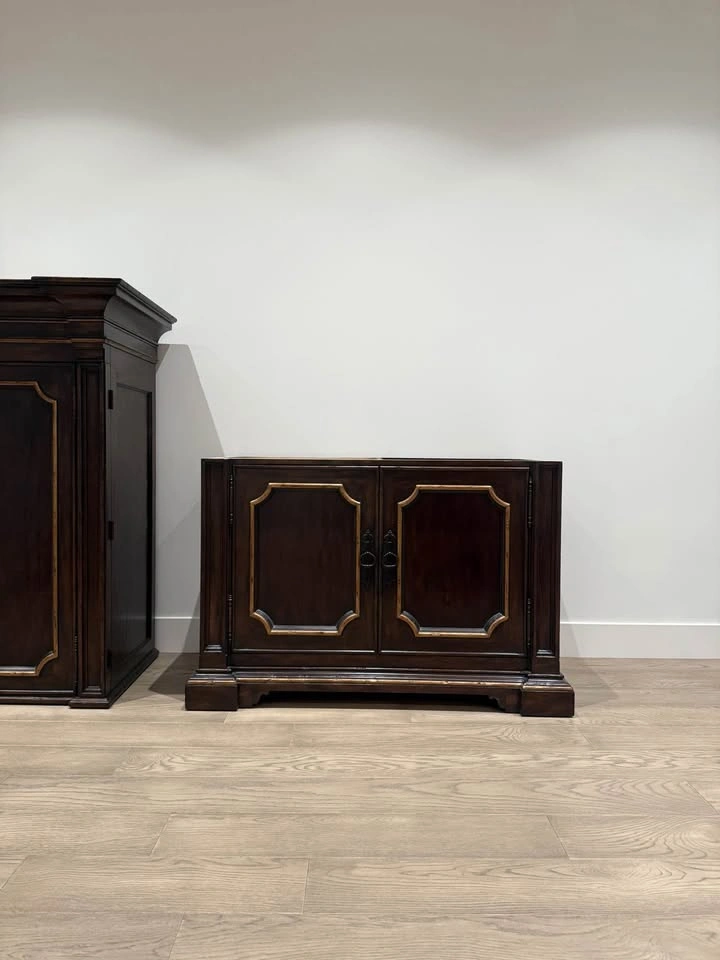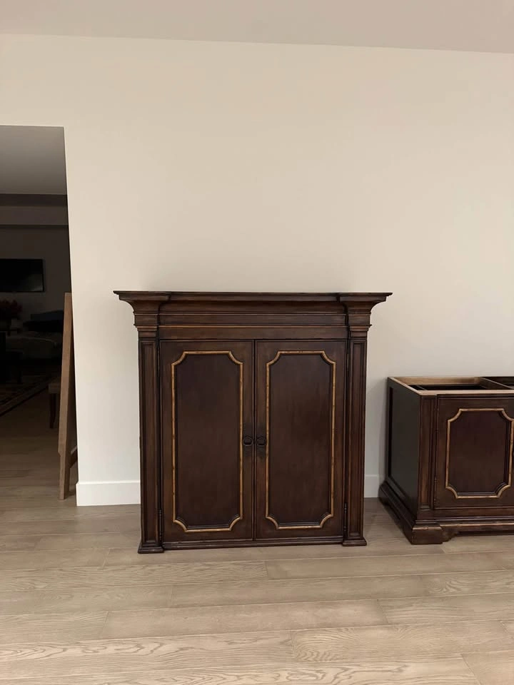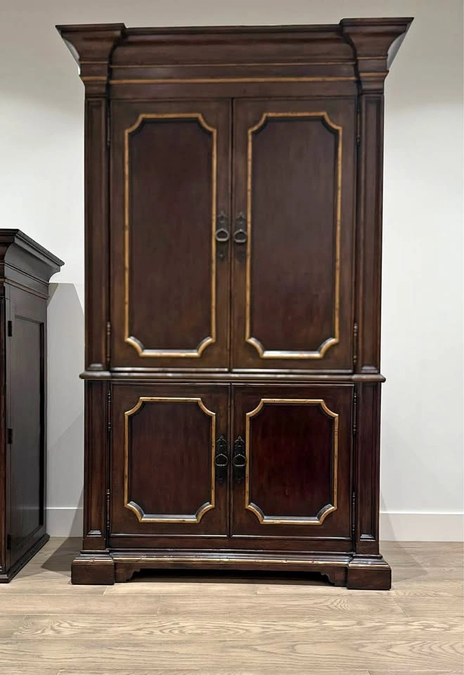 Free. You will need two strong people and a truck. Great condition, Drexel Heritage beautiful armoire. 2 pieces. Paid 3000 for this in 2012. Very heavy! Stairs are involved at pick up. You will require a couple of strong humans and a truck. Width: 51” (bottom) 55” (top) Height: 88.5” Depth: 24” (bottom) 26” (top) The size varies at bottom and top, due to the top piece flaring out left, right, and forwards. *Apologies as the first image is a Photoshop rendering of the two pieces placed one on top of the other (was too heavy for us to assemble for the picture).