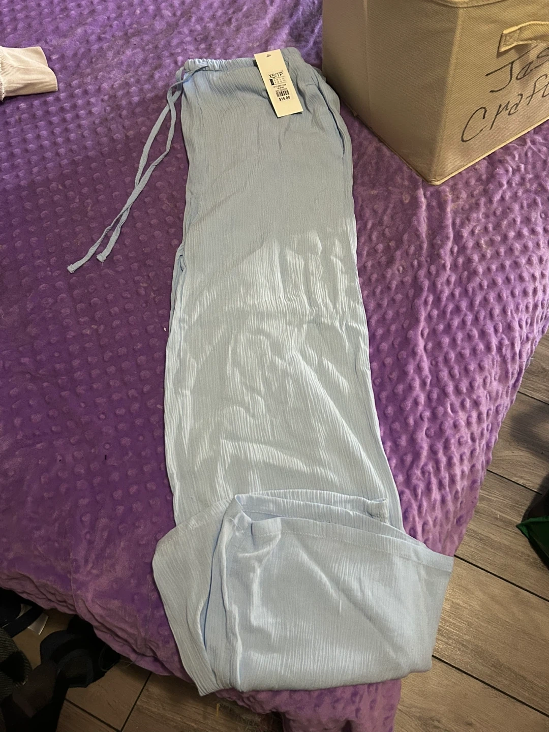 These lounge pants are brand new with tags! They are a beautiful light blue colour and size XS, From H&M. Perfect for relaxing at home or running errands in comfort. $10 Cash Only, NO Etransfers. Pickup Downtown West End