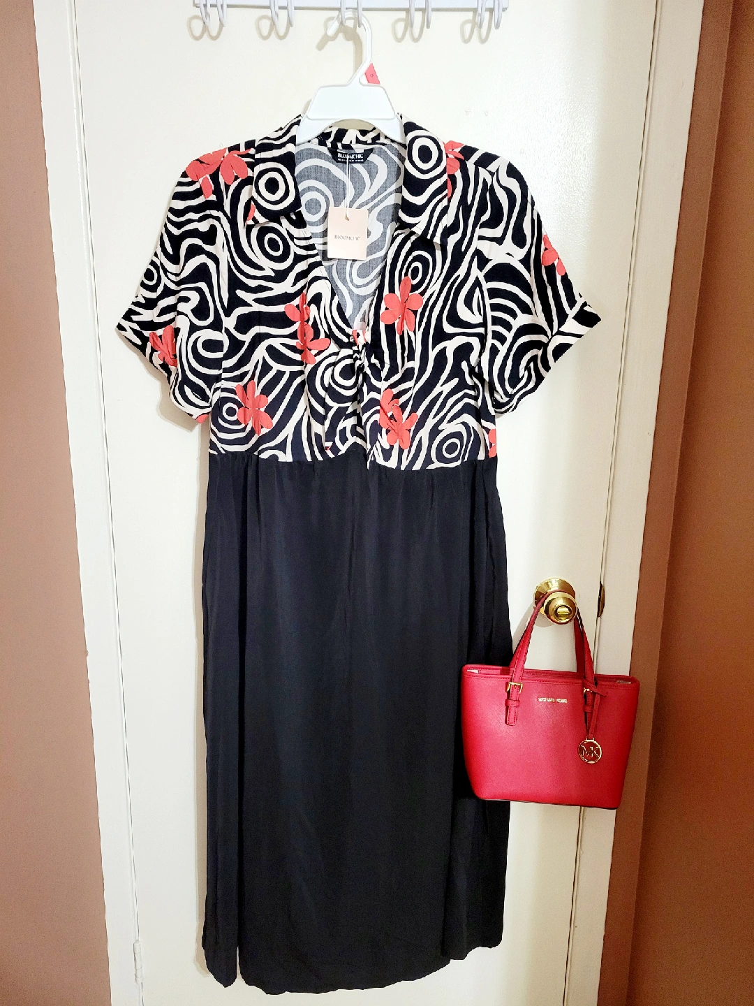 Beautiful Bloomchic Dress -From/Brand: Bloomchic -BRAND NEW WITH TAGS STILL ON! -COMES IS ORIGINAL PACKAGING! -Size: L-XL (14-16) -Material: Mixed (see photo gallery) -Colour: Red, white/cream, black -Pattern: Floral ribbon -Collared neckline with tie -Has pockets! -Closer fit on top with loose, flowy bottom -Maxi length on 5'2" female frame -Excellent transitional piece between seasons! -Appropriate for work, church, formal events 📸PLEASE SEE PHOTO GALLERY FOR MORE DETAILS ABOUT THIS ITEM📸 Asking only $15 (FIRM & FINAL) 💰CASH ONLY, PLEASE💰 ⚠️Please only message if you are SERIOUS about buying AND you know when you'd like to pick up.⚠️ 🚙Located in North Oshawa BEATRICE & RITSON area.🚙 ⏰️No holds longer than 2 days.⏰️ ❗️CROSS POSTED❗️