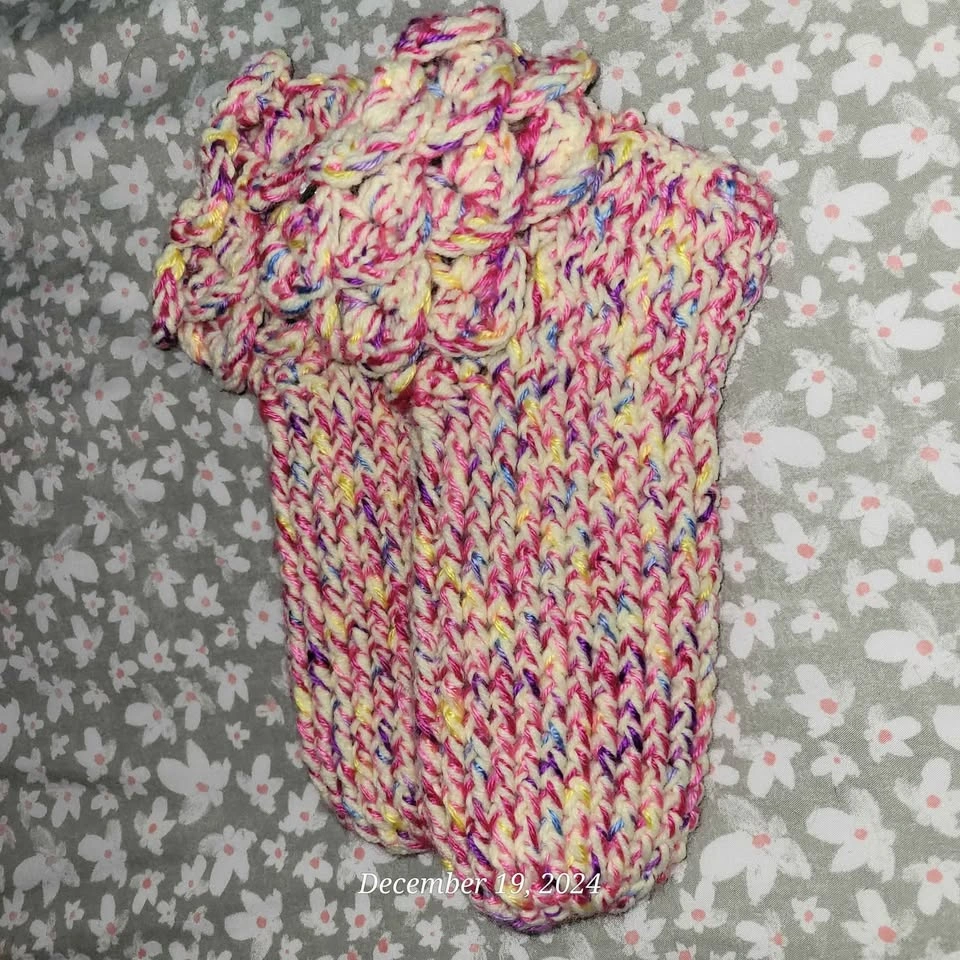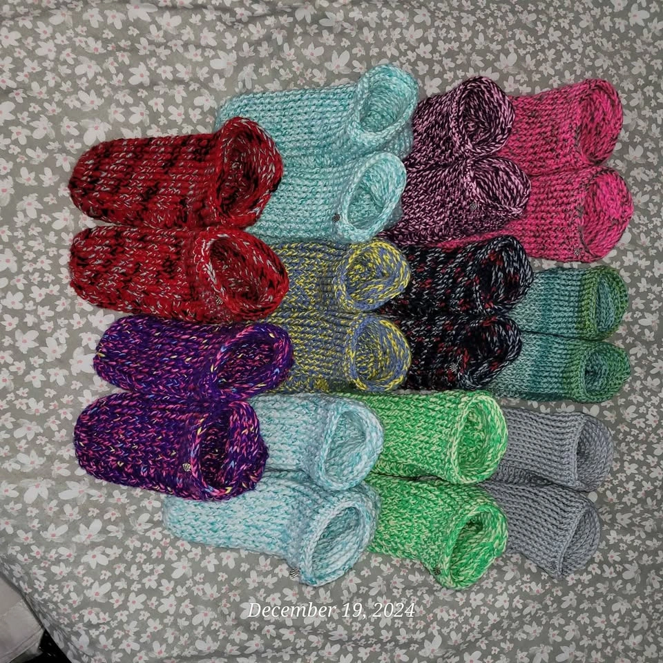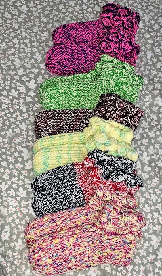 My handmade crochet slippers are absolute perfection! 🎨🧦 They're warm, cozy, and feature beautiful colors that'll brighten up anyone's day. I used 2 strands of yarn to make them super thick and snug, making them ideal for fall and winter. Plus, they're the perfect size for stocking stuffers – who wouldn't love slipping into a pair of soft, handmade slippers on a chilly morning? ❤️🧦 They're sure to bring warmth and joy to anyone who gets a pair! (various sizes) Dragon Scale slippers $15 Cabin slippers $20 Kids mittens (knitted) $10