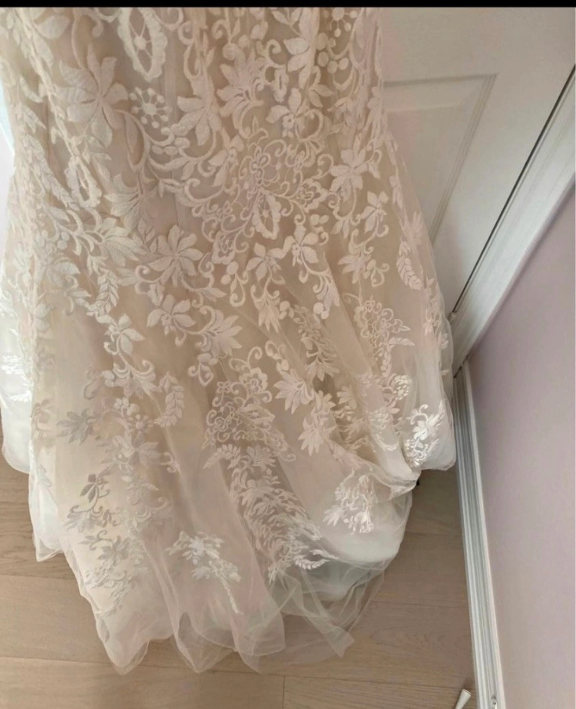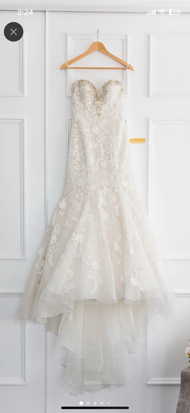 Stunning ivory lace mermaid wedding gown. Beaded bodice. Train with bustle. Strapless. Size 8 or XS-Small Pickup at King street east and Sherbourne