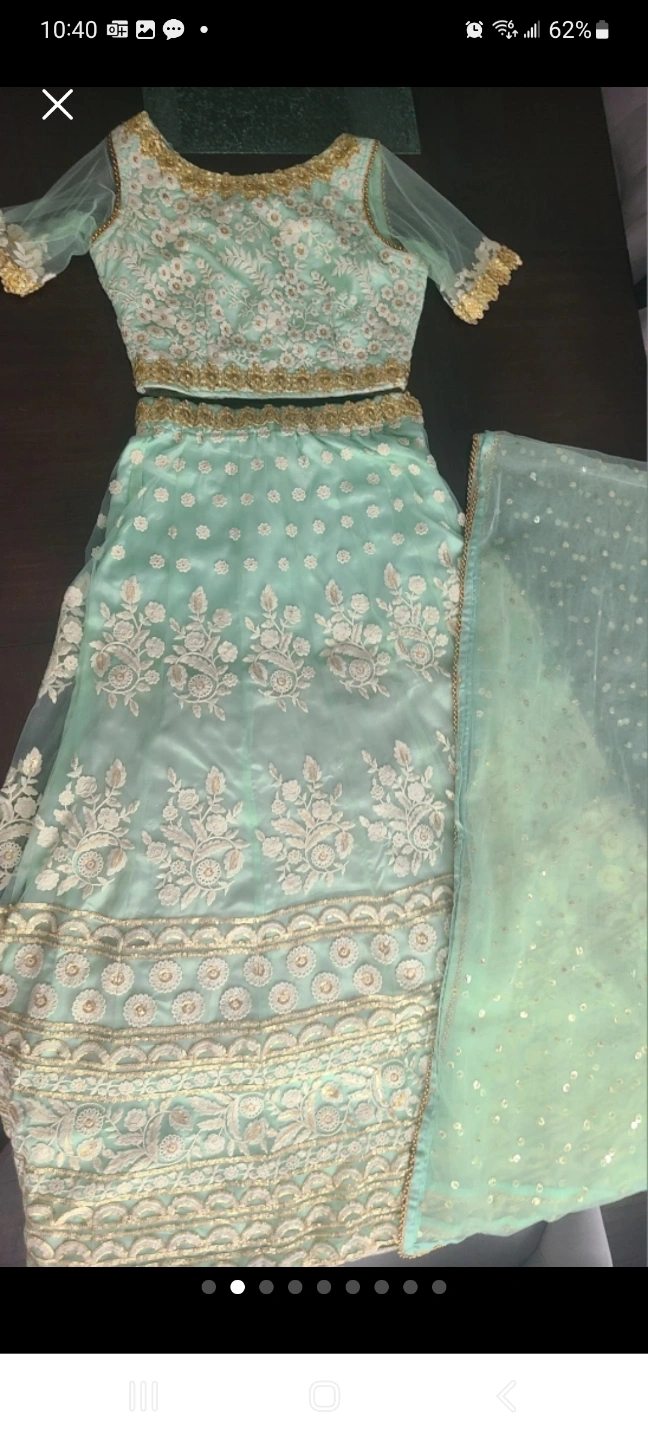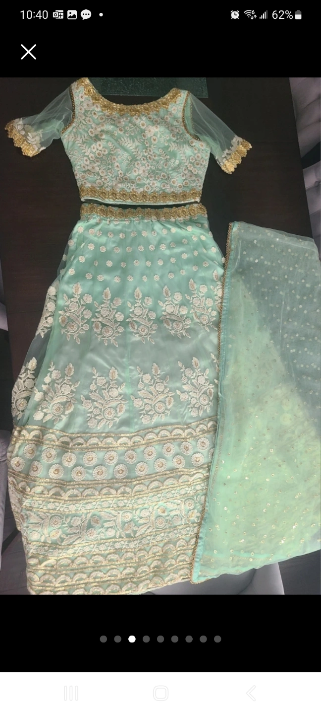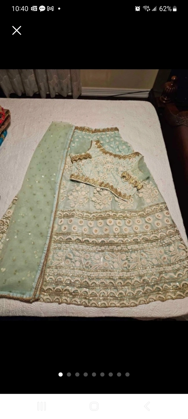 Gorgeous mint green lehenga choli. Intricate embroidery. Includes matching dupatta. Stunning for special occasions.