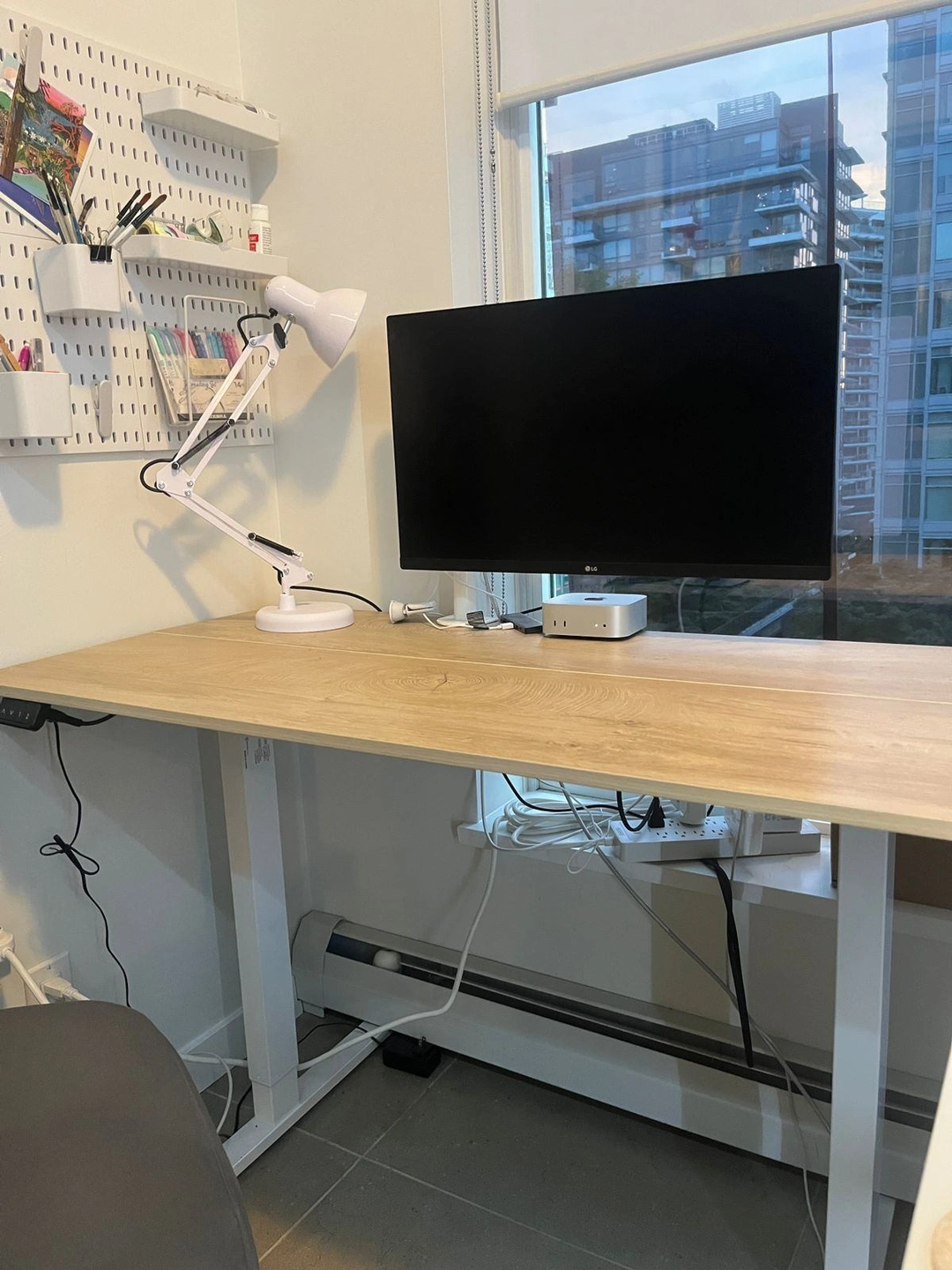 Beautiful standing desk. The desk is in great condition overall — sturdy and clean. The only issue is that the electric motor stopped working, so it currently doesn’t raise or lower automatically