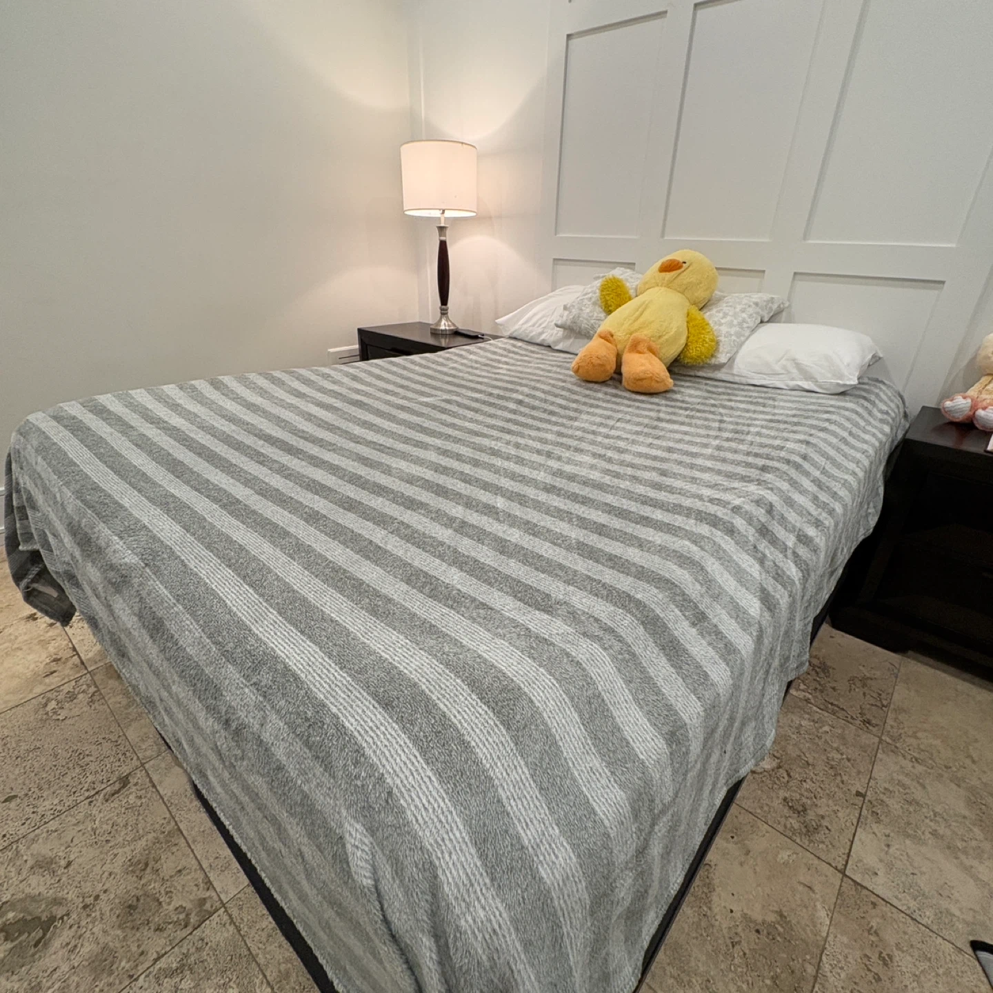Selling a bedroom set that includes a dresser with mirror, a bed, a nightstand, and a lamp. All items are in good condition and ready to go to a new home! Several household items for sale I have a lightly used queen size mattress, and frame with bed stand. I have only had this bed for about a month and it has been used with a mattress protector mattress protector can be removed and it is basically brand new underneath I also have a bedroom set two nightstands with matching bedside lamps and a dresser some very minor scrapes and has lovely suede inserts in the drawers. I also have a dining set. I am located in Scarborough. I am very negotiable. Please make me an offer. You can contact me at 647-291-0149 . I also do have some other household appliances that can be thrown in as well.