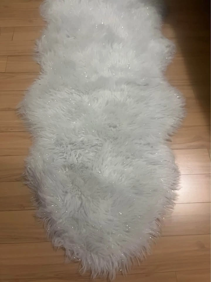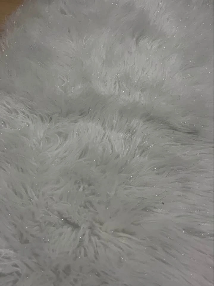 It’s white but has glittery elements all over it like tassels and also the base fabric is grey. Shown both with room lights on and room lights off. Pickup Beltline