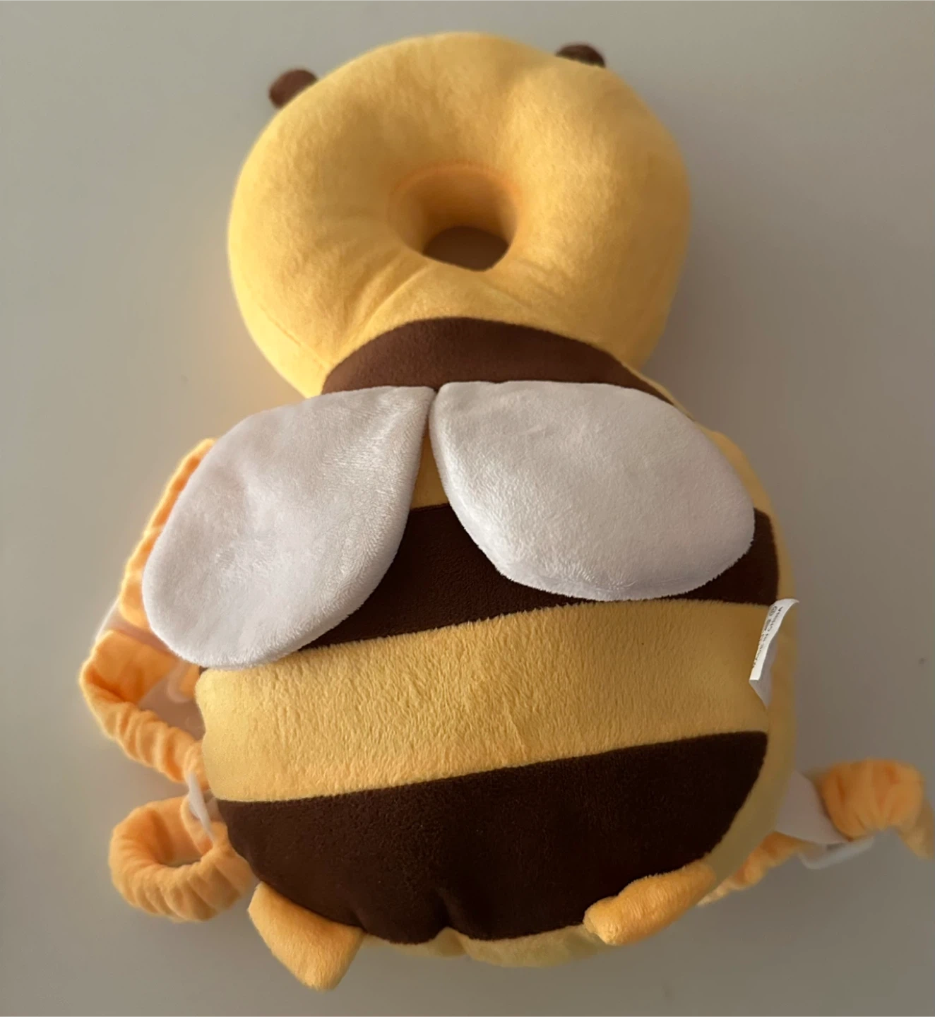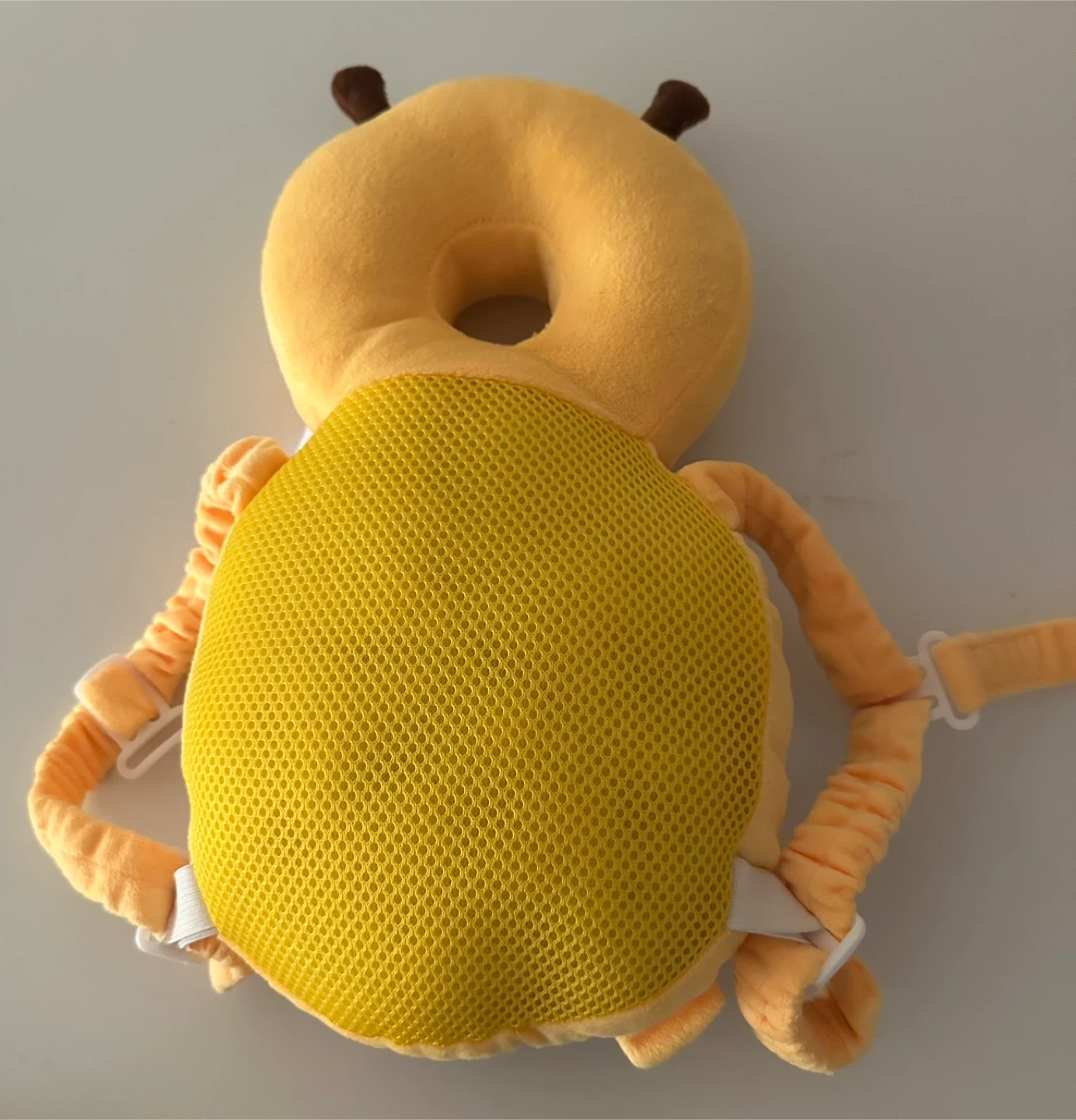 Protect your little one's head with this adorable bee-shaped head protector backpack! It's designed to cushion falls and bumps while they're learning to walk or play. The backpack features a cute bee design with wings and antennae, making it both functional and fun. Perfect for toddlers!