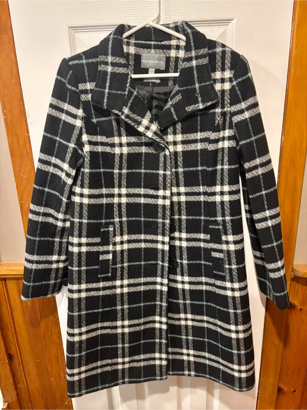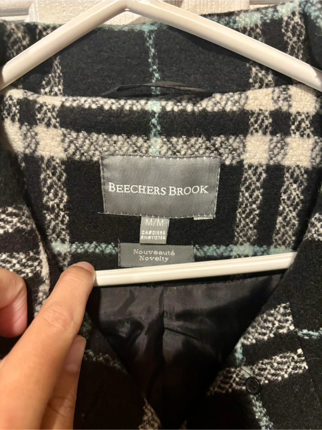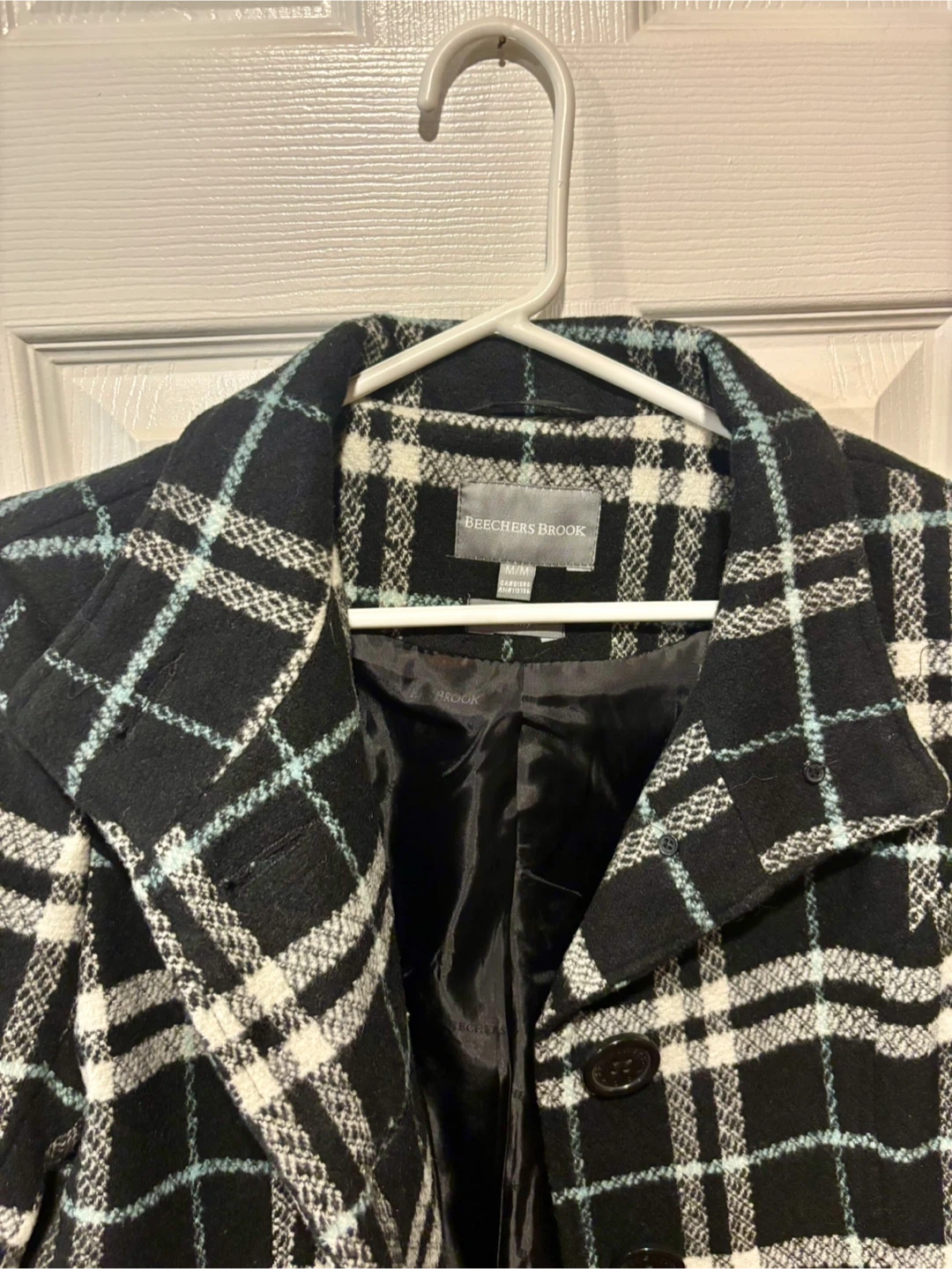 Gently used Beechers Brook women’s plaid jacket. Size medium. Knee length.