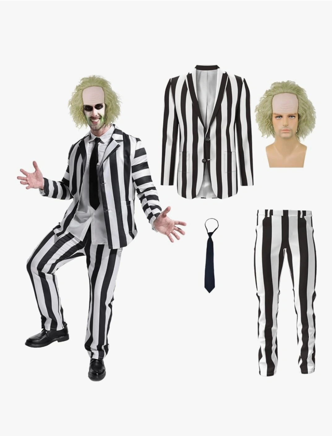 Selling an XL man Beetlejuice costume, perfect for Halloween or cosplay! It includes the iconic black and white striped suit jacket and pants, plus a black tie and white shirt. It also comes with the wig. Excellent condition.
