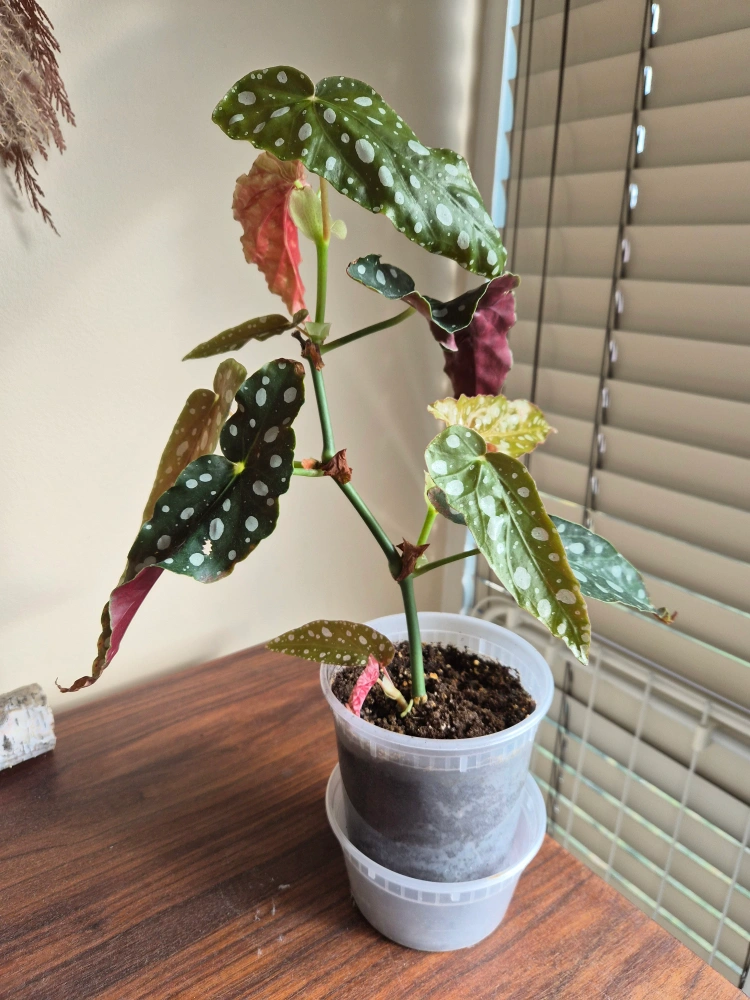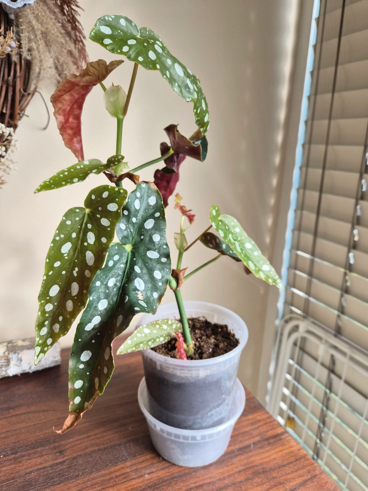 Healthy with new growth. About 16" tall from the base. 4" wide planter.