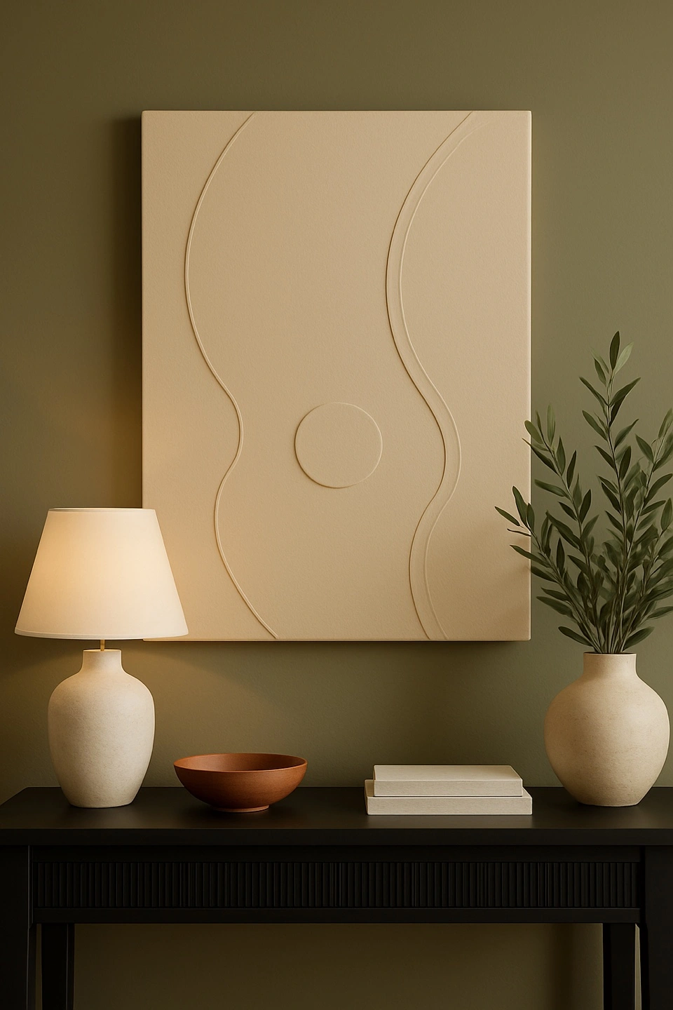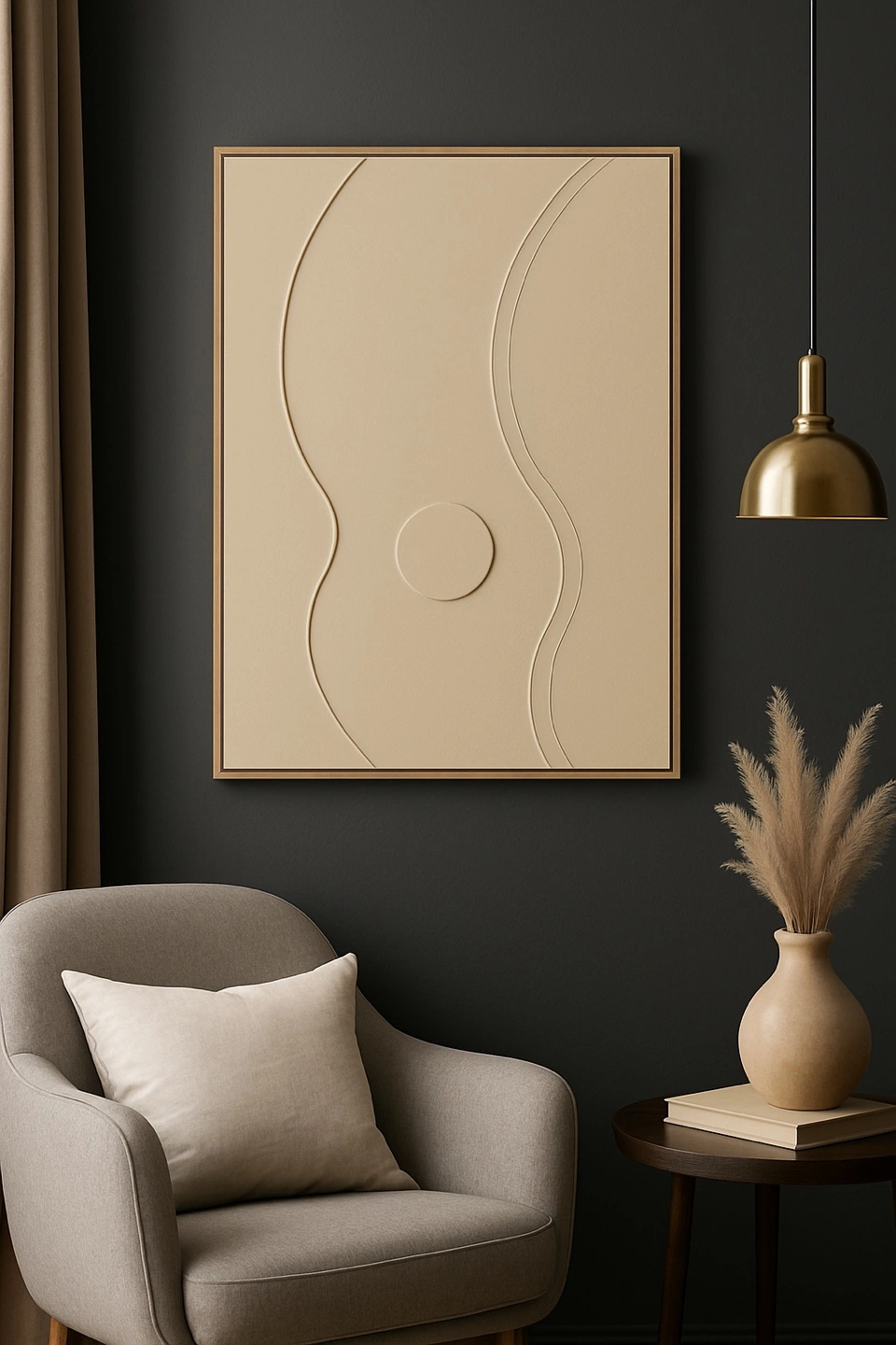 Looking to add a touch of modern elegance to your space? This beige abstract wall art is perfect! Its minimalist design and neutral colour make it a versatile piece that can complement any room's decor. It's in great condition and ready to hang