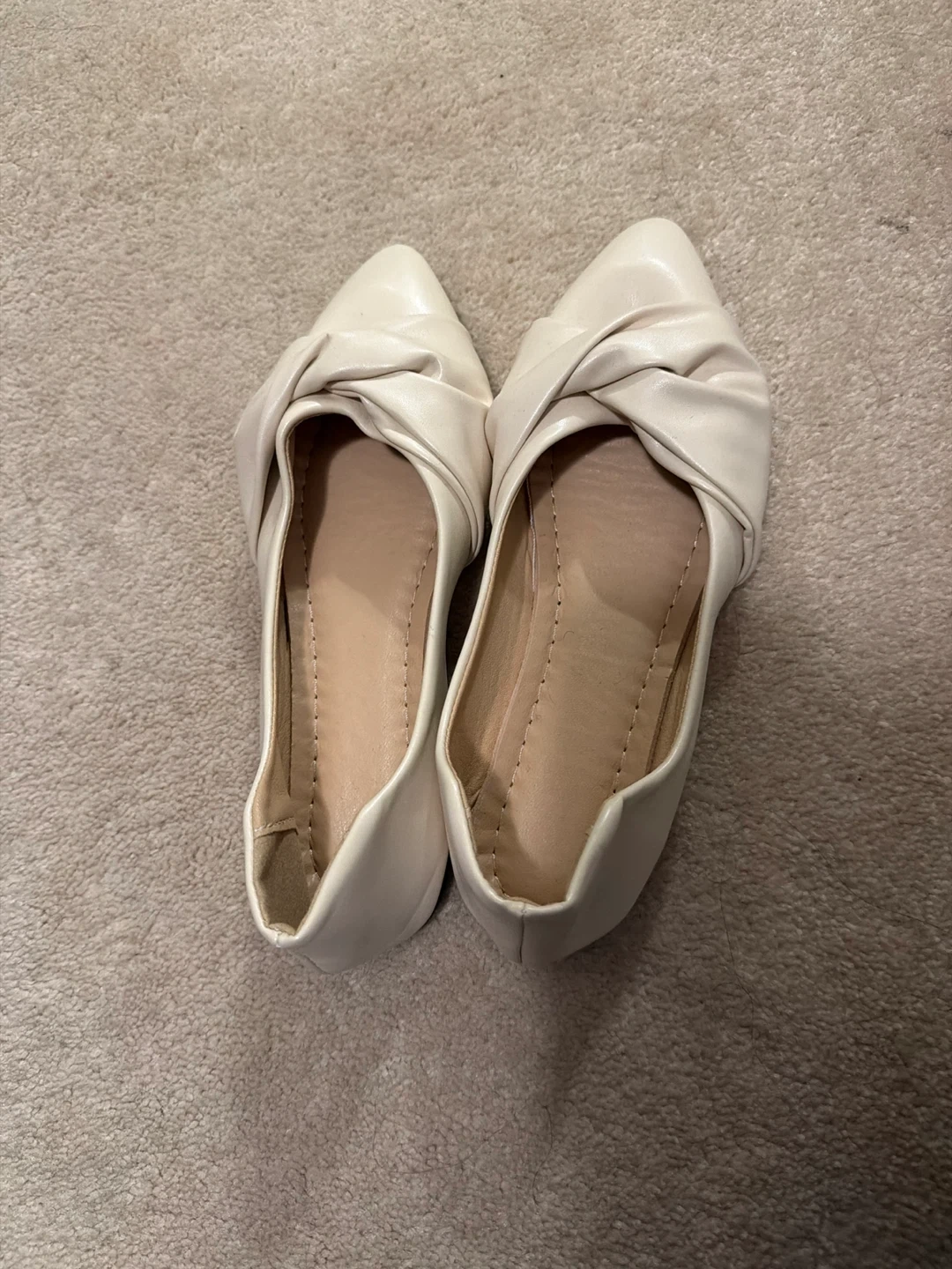 Selling a pair of beige ballet flats. They're in great condition and perfect for everyday wear. They are a size 6 I never wear it before