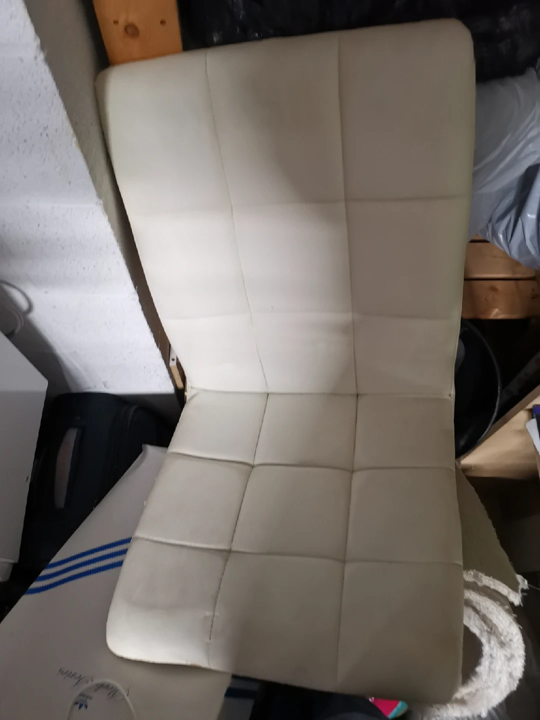 Selling a beige dining chair. It has a padded seat and back for extra comfort. It's in good condition and would look great in any dining room or kitchen I have 3 chairs with metal legs as shown in the pictures. 50$ for all 3. The seats are worn out but it's steady and strong. Pet and smoke free home Condition of 1 is good the other 2 ithr seats is worn out.