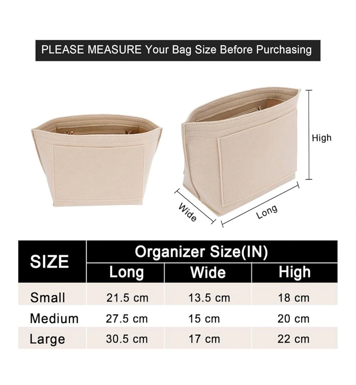 selling a beige felt purse organizer, perfect for keeping your tote tidy! It's medium size measuring 21.5 cm (Long) x 13.5 cm (Wide) x 18 cm (High).
