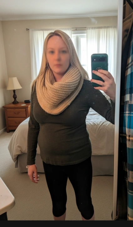Cozy up with this soft, beige knit infinity scarf! It's perfect for adding a touch of warmth and style to any outfit. This scarf is in great condition and ready to find a new home