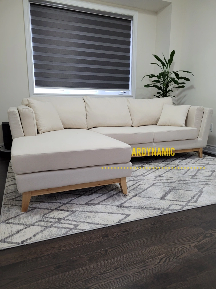 Selling a comfy beige sectional sofa, perfect for a living room! The sofa includes a chaise lounge on one end, making it great for relaxing. The neutral colour would fit well with many decor styles. It's in great shape and ready for a new home!