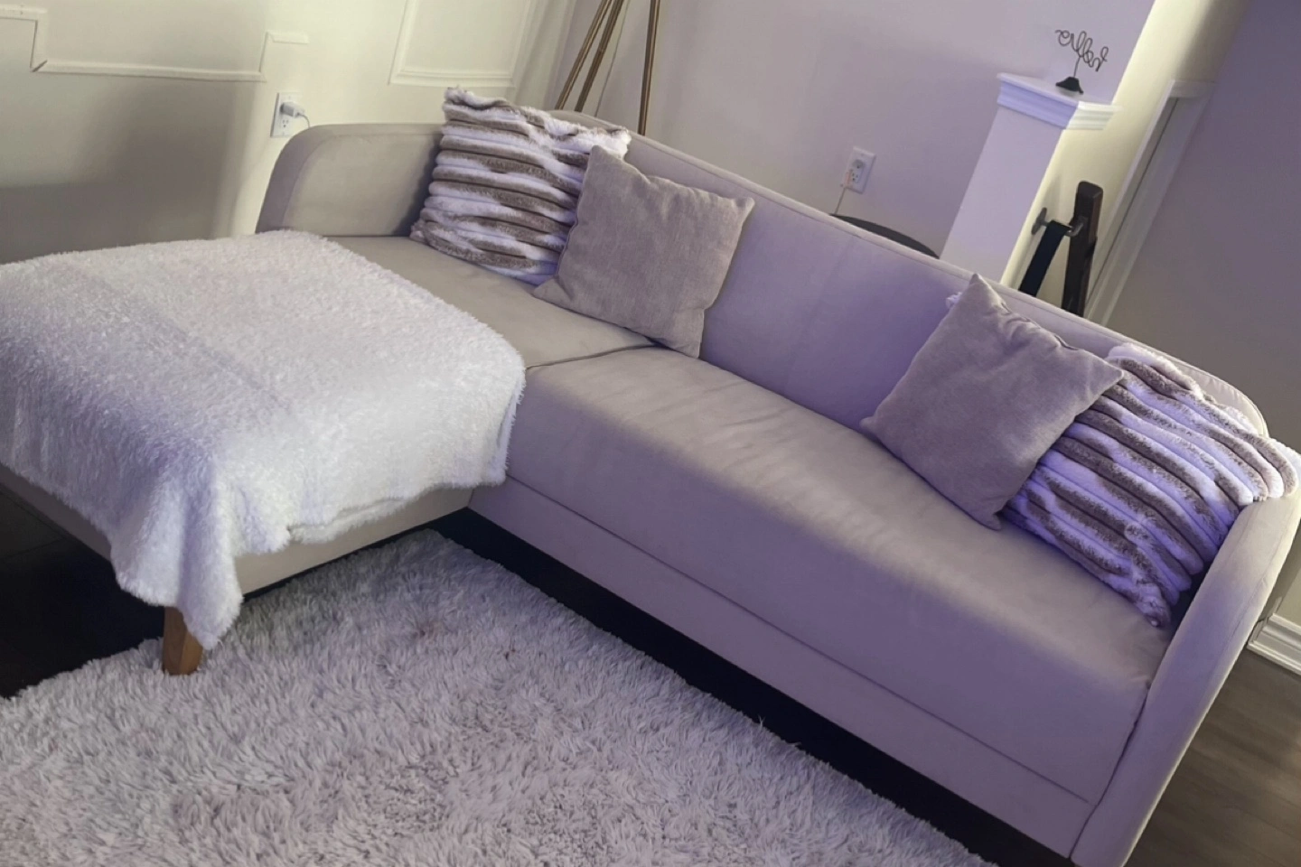 Selling a comfy beige sectional sofa! It comes with a few decorative pillows to complete the look. It's in great shape and ready for a new home. Perfect for lounging and adding a touch of warmth to your living space its already dissambled and need a good was because its sitting in my garage.