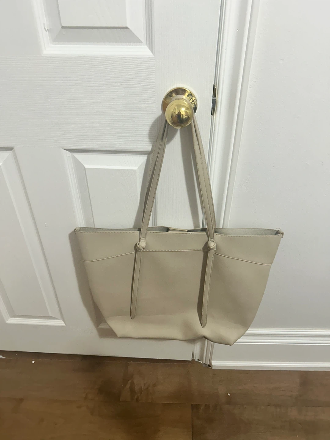 Selling a beige tote bag. It's in great condition and perfect for everyday use! It's a neutral colour that goes with everything