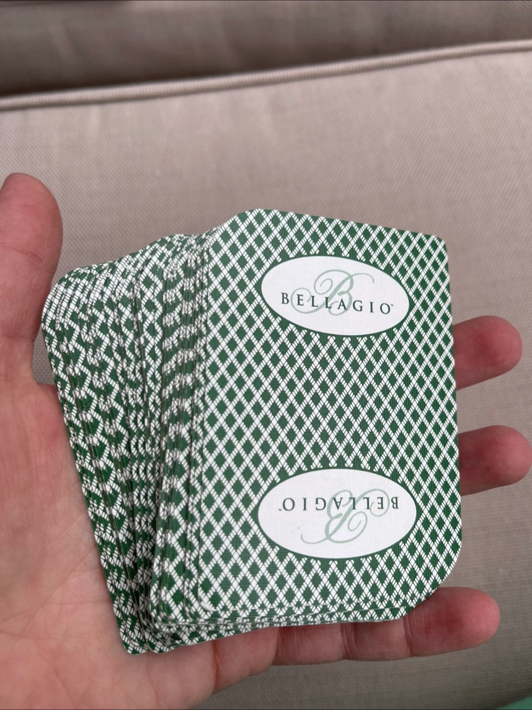 Selling a deck of Bellagio playing cards! They're in great shape and ready for your next card game. The back has a green diamond pattern with the Bellagio logo