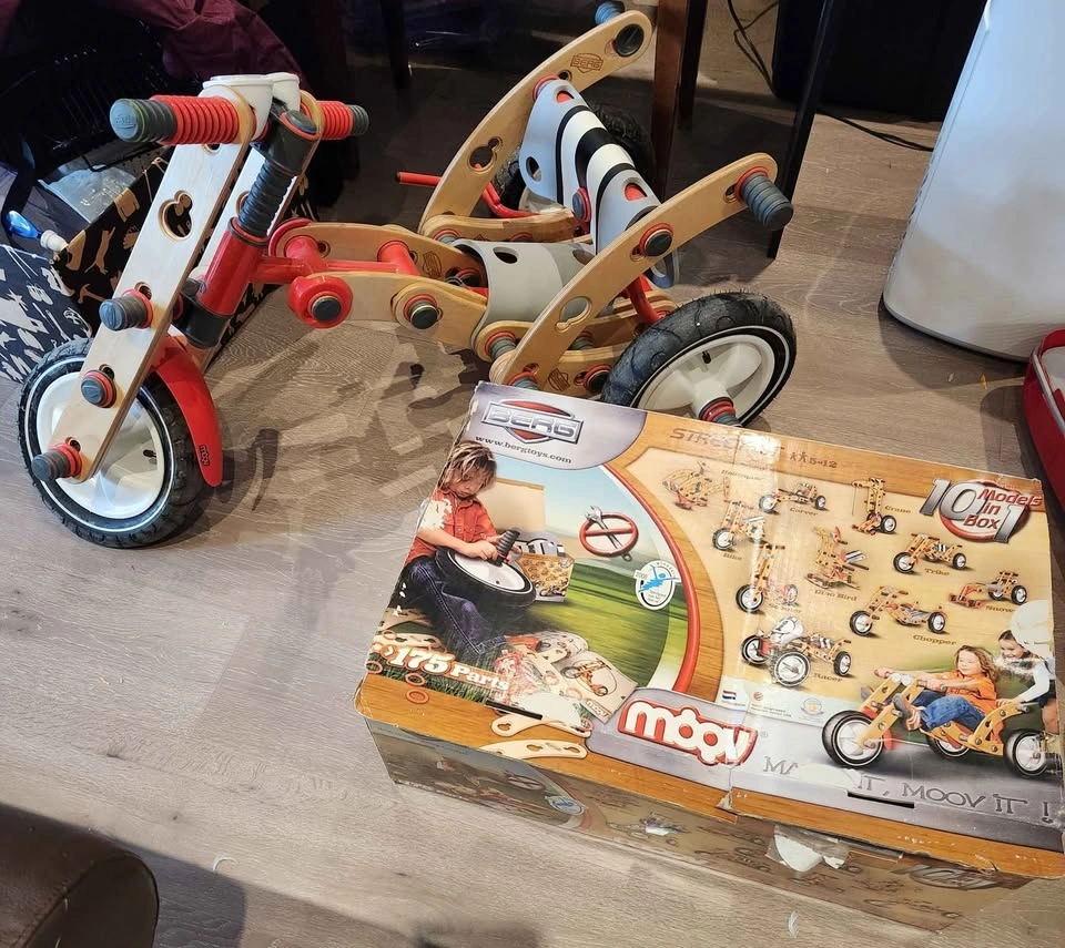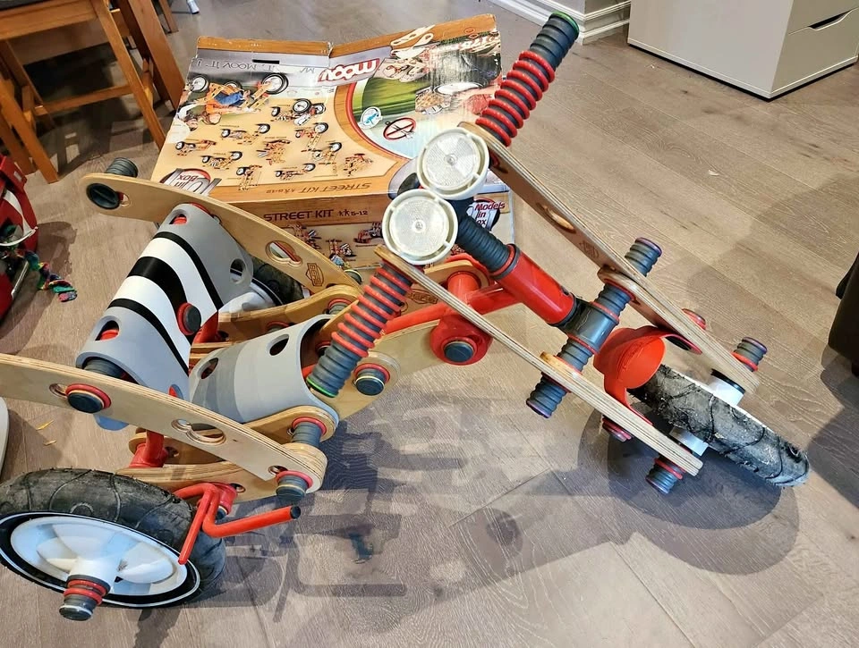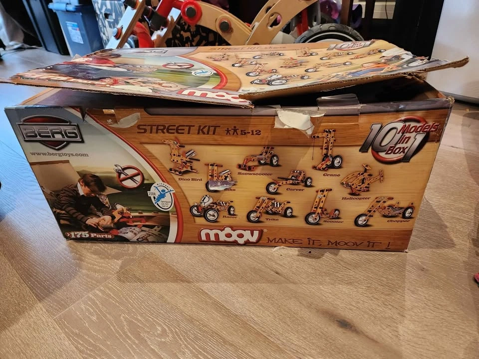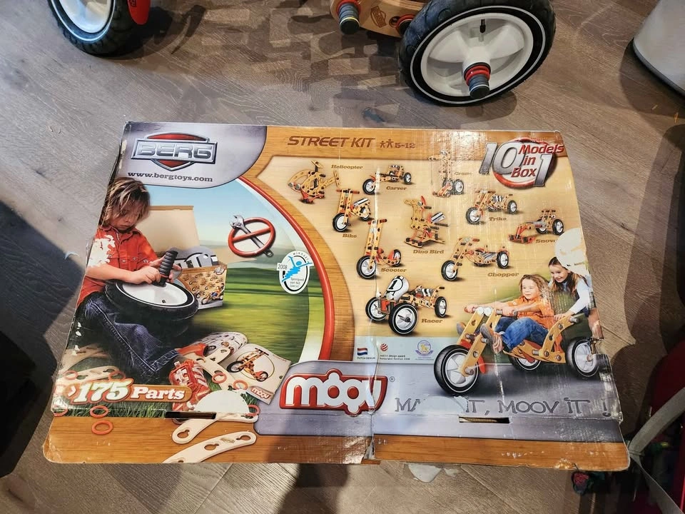 BERG Moov Road kit This is a "build your own" ride on toy kit. Wooden toy building set. 175 parts. Build 10 different models. Instructions are included to build * Trike * Scooter * Chopper * And more Intended for ages 5-12.