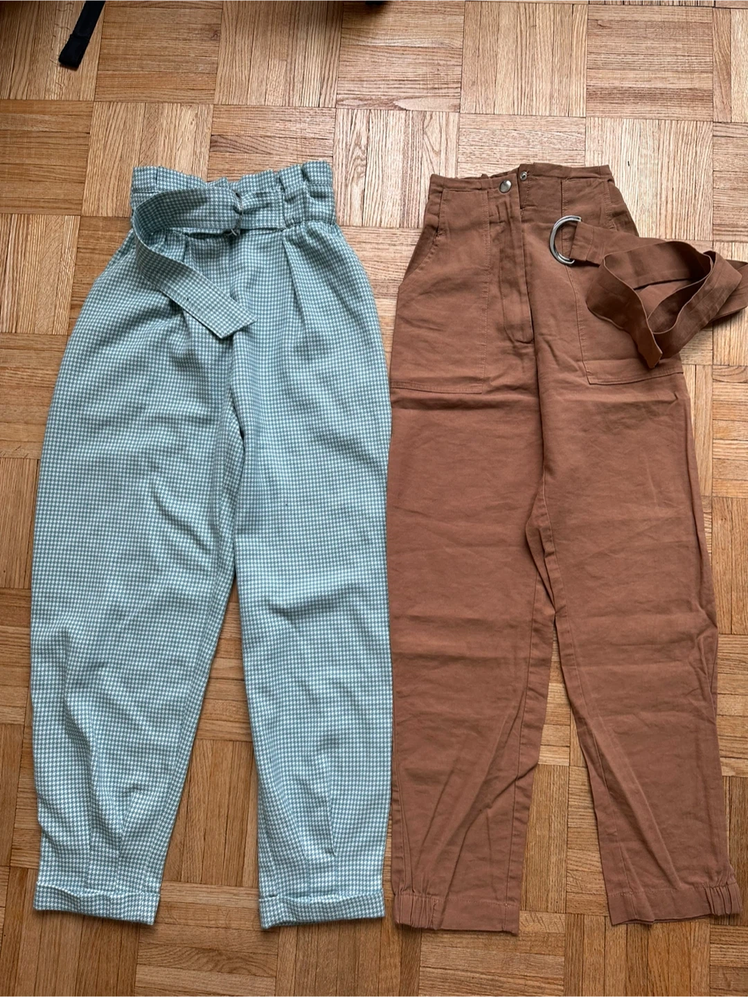 MOVING SALE Selling a couple of elegant and stylish pairs of pants! One pair is from Bershka, a light blue and white checkered pattern. The other pair is from Pull&Bear, in a solid brown colour. Both are size XS. Selling together Pick up near Yonge and Bloor