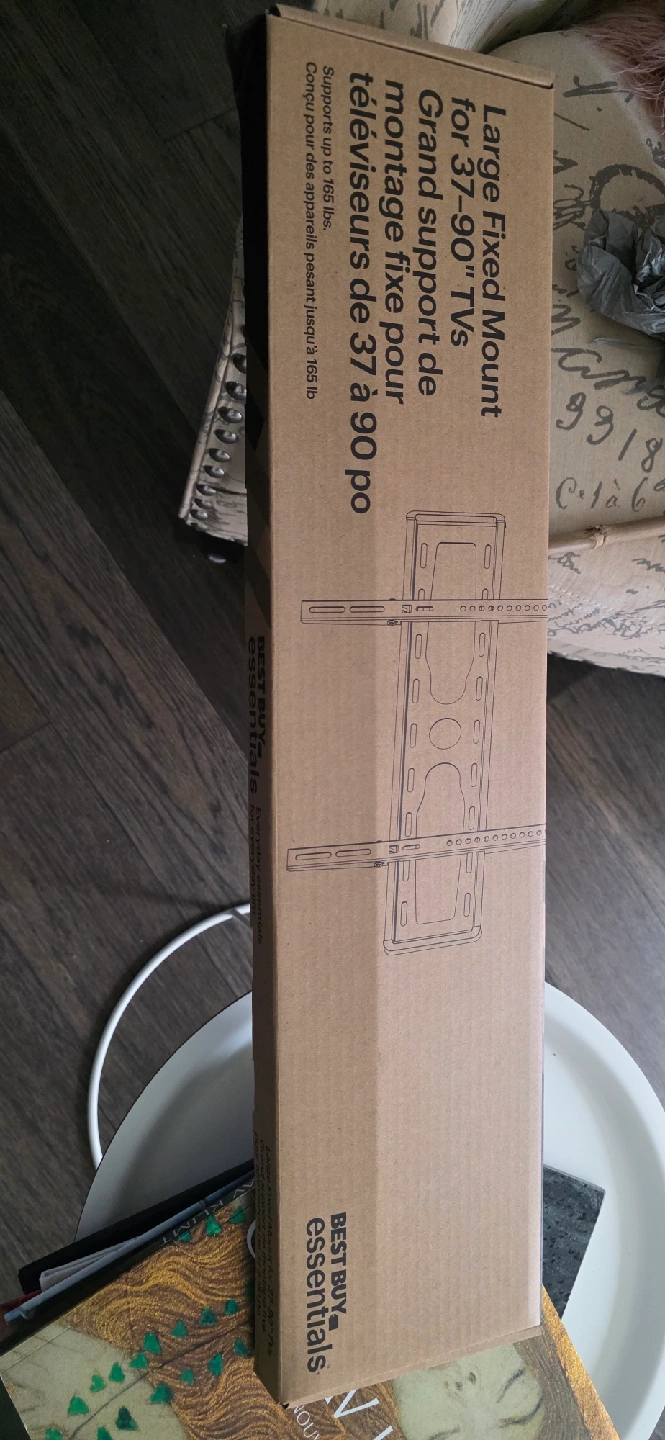 Selling a Best Buy Essentials fixed TV wall mount, compatible with most 37-90" TVs. It's in great condition and comes with the original box. Model number is BE-MLFX. Priced at $29.99 plus tax at Best Buy. I cannot use this and it's in the sealed box.