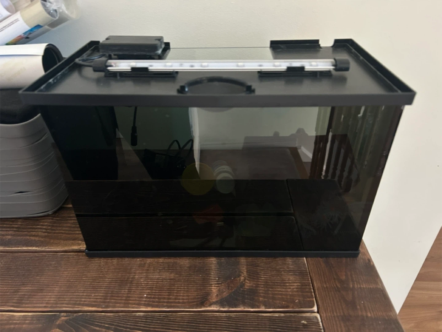 Selling a Betta fish tank that's in great shape and ready for a new home! It comes with everything you see in the pictures, including: - Betta Basics water conditioner - Tetra BettaMin fish food - Filter - LED light I also have decor items, fish net and some plants available. I’ll provide pictures if interested.